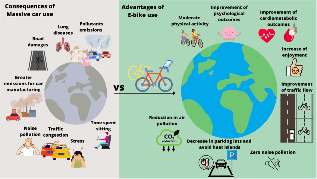 Figure 2. Comparison between the consequences of using motorized vehicles (on the left) and e-bikes (on the right).