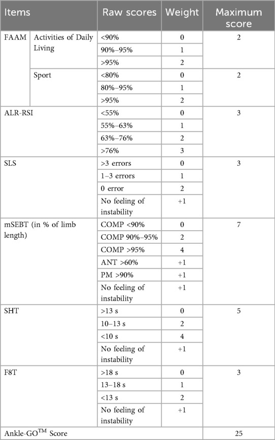 Table 1. Ankle-GO scoring system [adapted from (58)].