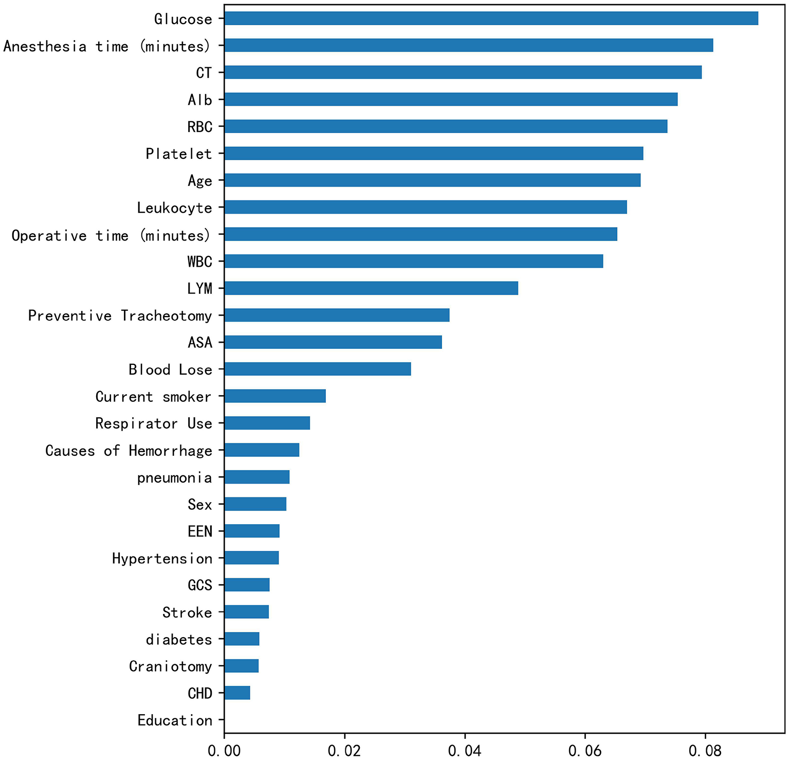 machine learning, postoperative, postoperative pulmonary complications, emergency, cerebral hemorrhage surgery