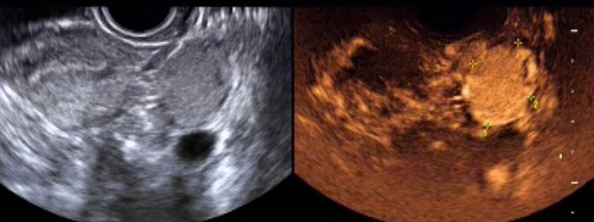 Two-dimensional vaginal ultrasound and contrast-enhanced ultrasound were performed in both groups, and the imaging parameters and characteristics were recorded to determine the diagnostic value. To ensure repeatability and avoid potential differences in device setup, all contrast-enhanced ultrasound examinations and measurements were performed by a senior attending physician.