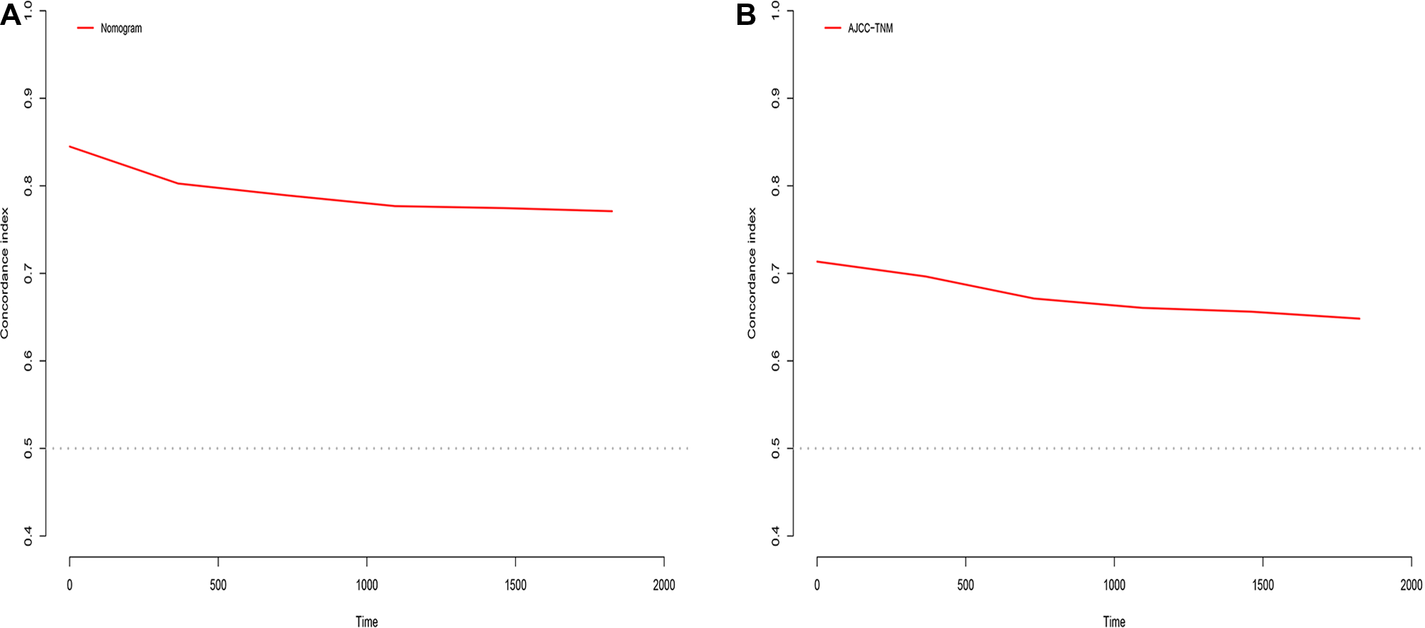 Comparison of the Risk Stratification Associated with the Nomogram and AJCC