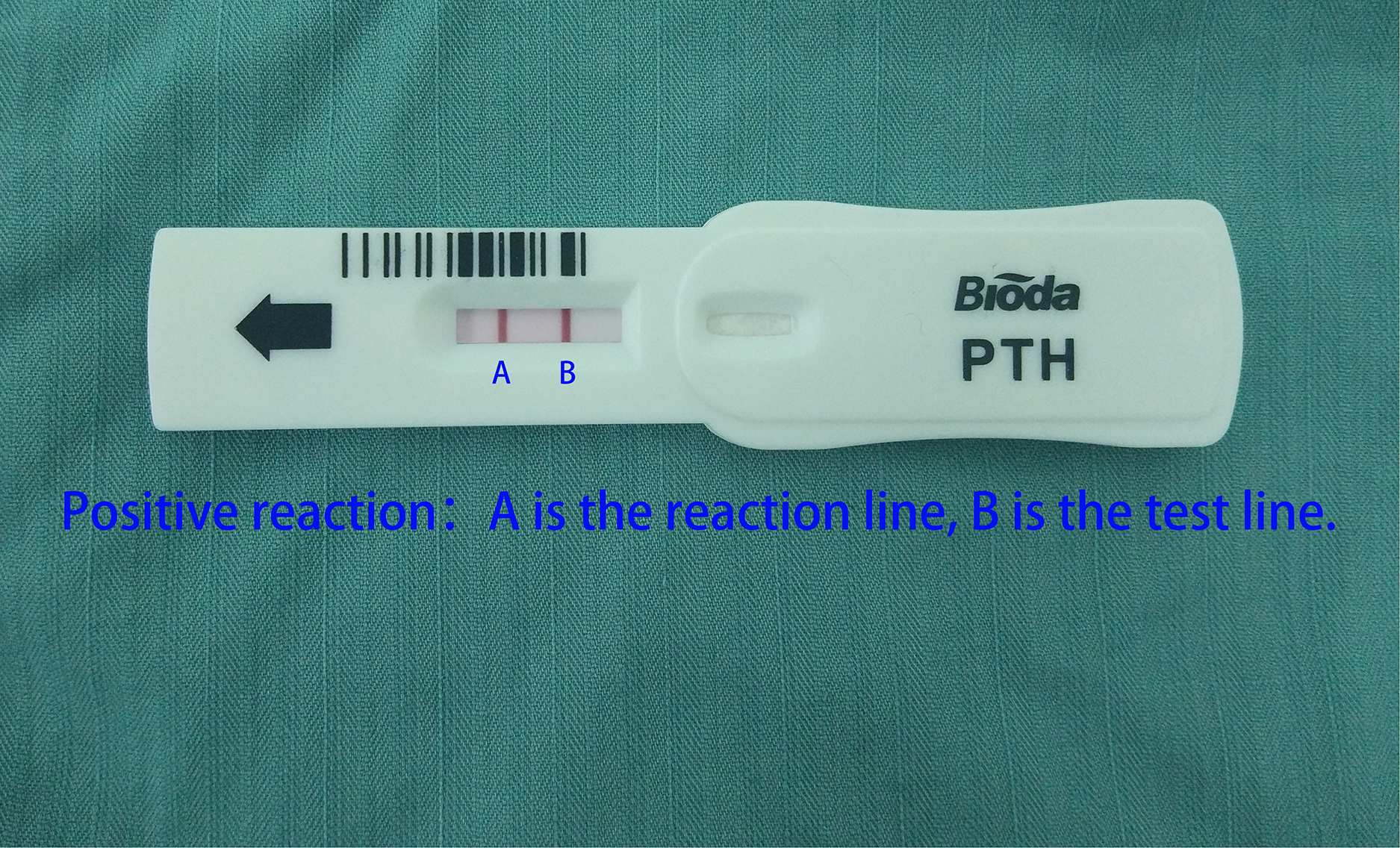 After properly rinsing the needle in 1 ml saline, it was used to pierce the suspected parathyroid tissue three to five times (Figure 6). After all else was done, 100 µl of liquid was poured into the detection hole of the PTH quick test paper. Figure 7 shows a colored reaction line if the parathyroid tissue was positive, and a colorless line if it was negative.