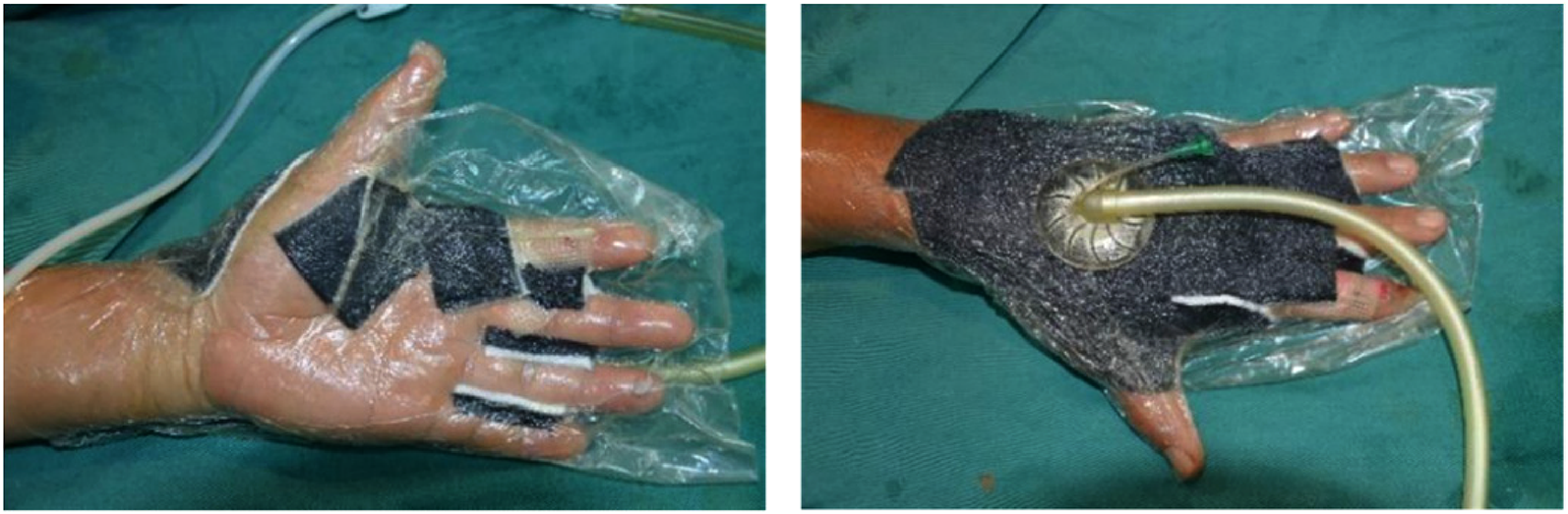 FooAShenthilkumarNKin-Sze ChongA. The “hand-in-gloves” technique: vacuum-assisted closure dressing for multiple finger wounds. J Plast Reconstr Aesthet Surg. (2009) 62(5):e129–30. 10.1016/j.bjps.2008.05.030