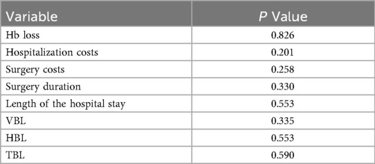 Surgeon variability in HBL and operative time underscores the role of experience: Surgeon No.8, despite longer operative times, had lower HBL, potentially reflecting superior hemostatic suturing techniques. Similarly, senior assistants reduced operative time by 8.73 min, a finding with cost implications given the correlation between operative time and hospitalization expenses (r = 0.387, p < 0.01). However, operative time didn't correlate with HBL in univariate analysis and not as an independent predictor, suggesting its possible influence is mediated by fibroid burden. This contrasts with Wen et al.'s report that time directly drives HBL in cervical and lumbar surgery (15, 21), likely due to differences in tissue vascularity between gynecologic and spinal procedures.