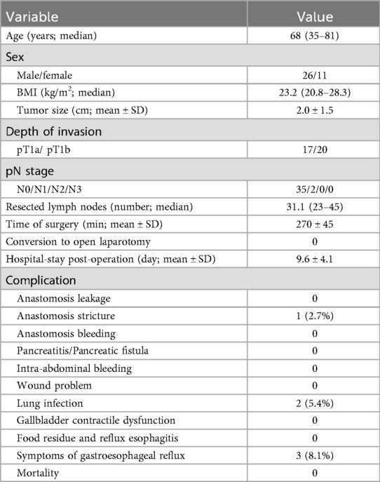 Table 1. Clinicopathologic characteristics and surgical outcomes of 37 patients who underwent LPG with VNP and DFT.