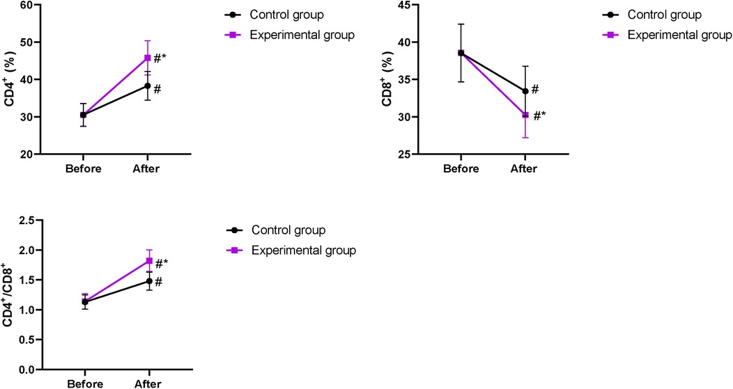 Figure 5. Immune function in both groups. #P < 0.05, compared with before intervention. *P < 0.05, compared with the CG.