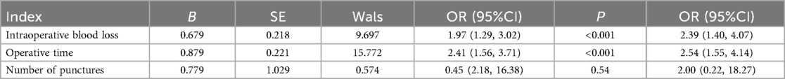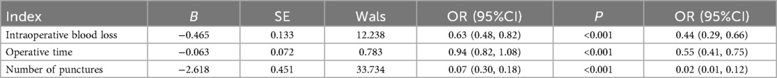 Data were analyzed using SPSS version 27.0. Measurement data conforming to a normal distribution were expressed as mean ± standard deviation (x¯ ± s), and categorical data were expressed as composition ratios or percentages (%). Comparisons of measurement data between groups were performed using the independent-samples t-test, while comparisons of categorical data were conducted using the chi-square (χ2) test or Fisher's exact test. Multivariate analysis was performed using logistic regression. A P value < 0.05 was considered statistically significant.