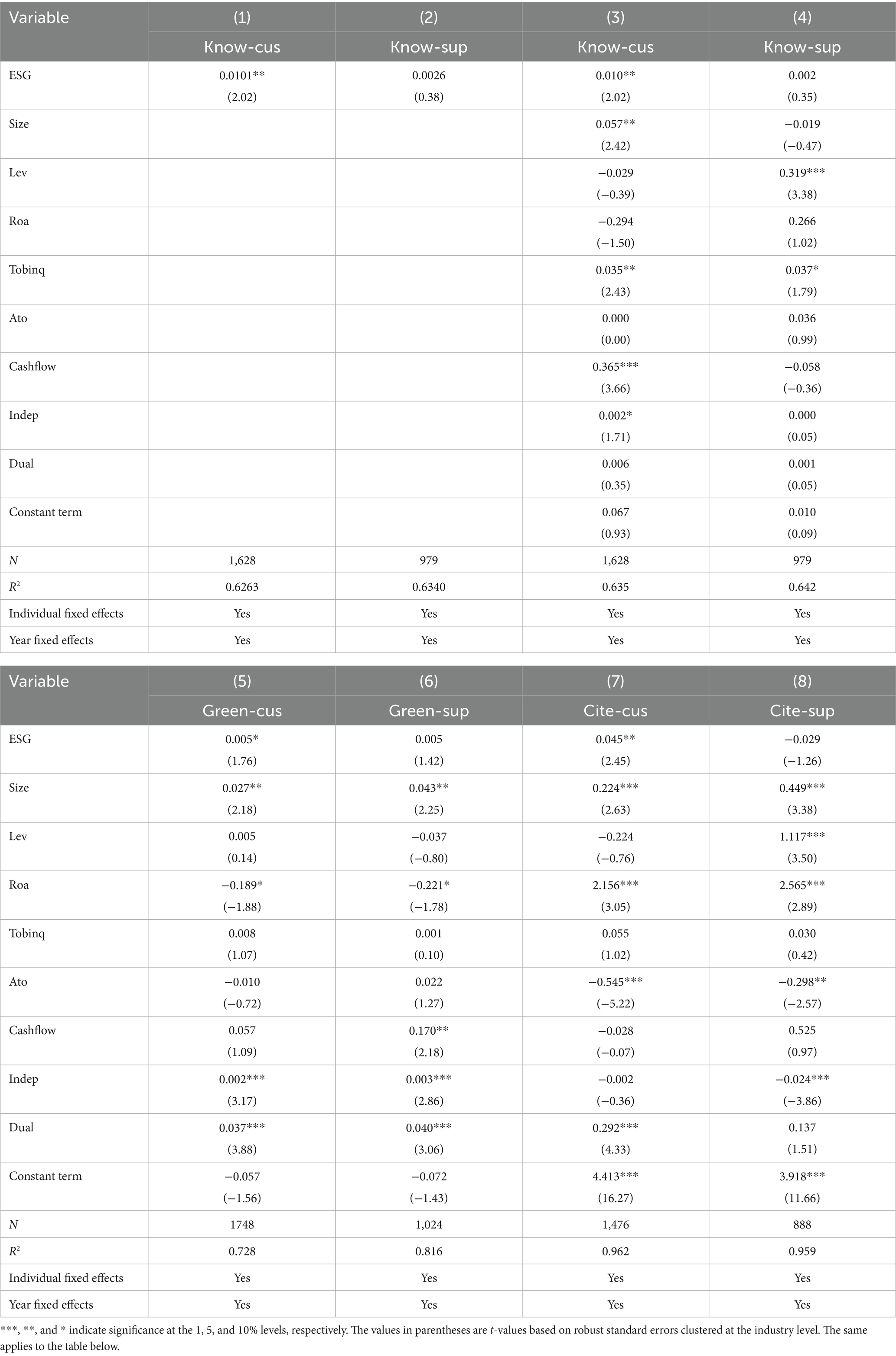 For corporate decision-makers, the findings suggest several practical actions: First, integrate ESG into supply chain governance: Firms should align ESG goals with supplier and customer relationship management to foster innovation synergy and co-create value across the chain. Second, enhance ESG transparency: Clear and credible ESG disclosures can reduce information asymmetry, improve reputational signaling, and strengthen both internal and inter-firm trust mechanisms. Finally, leverage ESG for downstream innovation: High-ESG firms are well-positioned to support customer innovation through joint R&D, technical assistance, and stable long-term contracts—enhancing their own influence and value capture in the supply network.