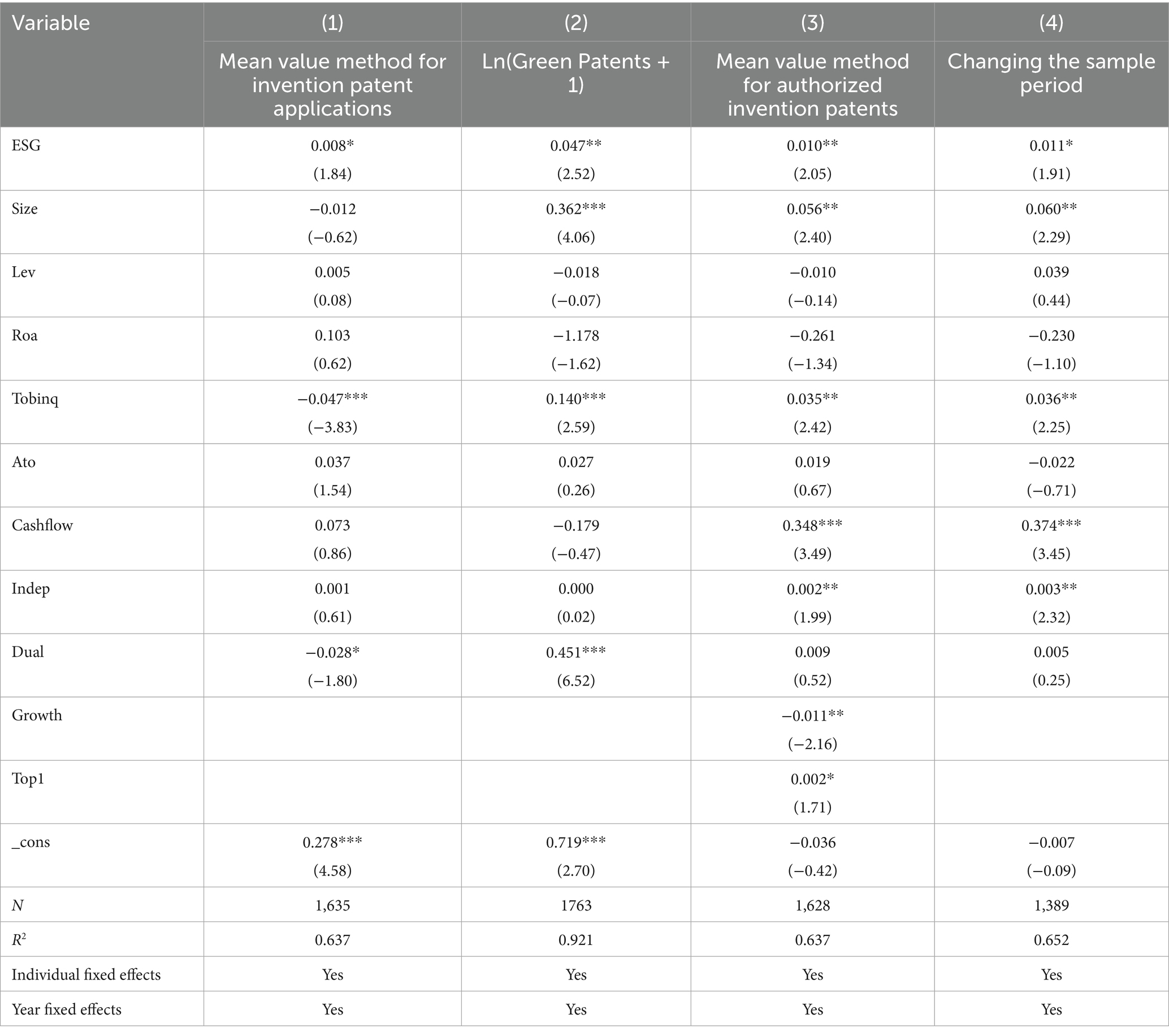 Zhang, J., and Liu, Z. (2023). Study on the impact of corporate ESG performance on green innovation performance—evidence from listed companies in China A-shares. Sustainability 15:14750. doi: 10.3390/su152014750