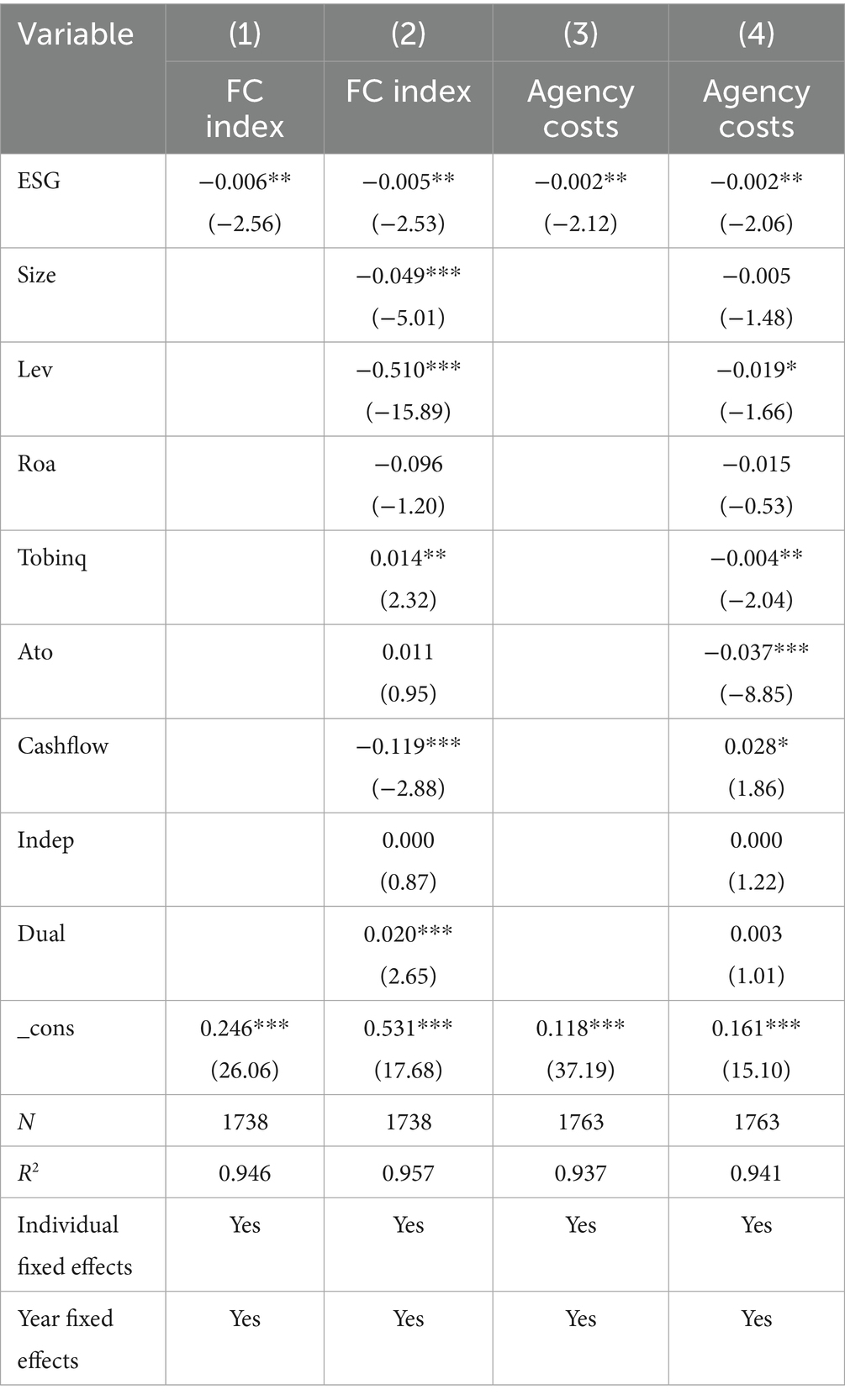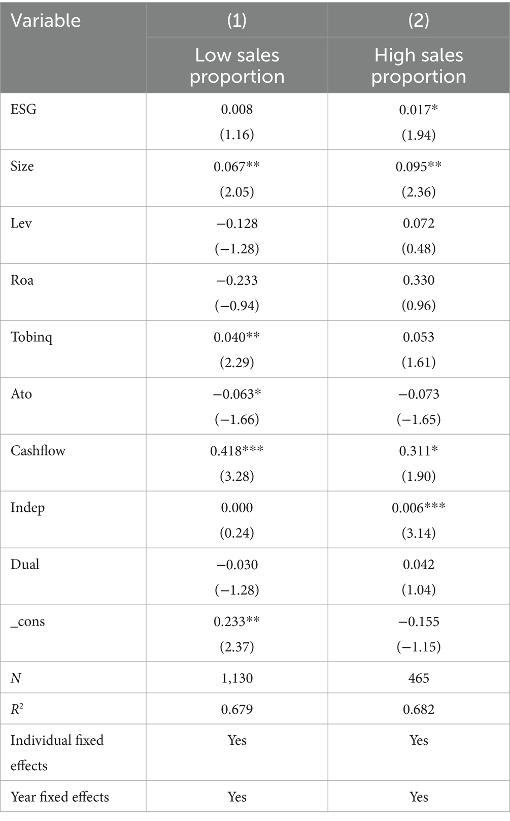 Besides, future studies may consider extending the analysis to multinational contexts to assess the cross-border generalizability of ESG spillover effects. Additionally, exploring other performance dimensions—such as financial resilience, market valuation, and risk exposure—would offer a more comprehensive view of ESG’s strategic value. Finally, integrating firm-level ESG behavior with broader institutional or regulatory environments could uncover further interaction effects and policy implications.