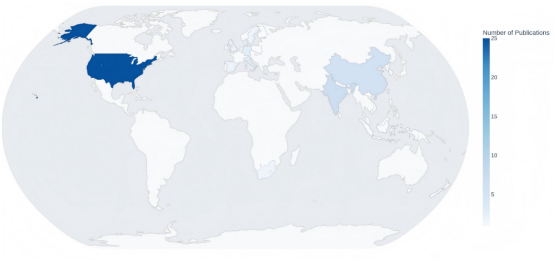 Finally, our analysis of the geographical distribution of research reveals a significant concentration of scholarly output in two major economic regions: North America and Asia. As detailed in Figure 4 and the accompanying data, the United States is the most prolific contributor, accounting for 25 of the 68 articles (36.8%) in our sample. This academic dominance likely reflects the country’s pioneering role in the fashion rental market, driven by the early emergence and significant market presence of platforms like Rent the Runway, which have become benchmark case studies (Armstrong and Park, 2019). Following the US, a notable cluster of research originates from Asia, with India (7 articles, 10.3%) and China (6 articles, 8.8%) being the next most significant contributors. The rise of research from these nations, particularly China, corresponds with the region’s expanding economic influence and its rapid adoption of innovative digital business models, especially in the sharing and e-commerce sectors (Zhang et al., 2025). European countries also make significant contributions, led by Germany and Italy (with three articles each), and the United Kingdom and Sweden (with two articles each), although their collective output is less than that of the US alone. This distinct geographical clustering strongly suggests that the current global understanding of fashion rental behavior is predominantly shaped by consumer experiences within the specific cultural and market contexts of North America and, increasingly, Asia.