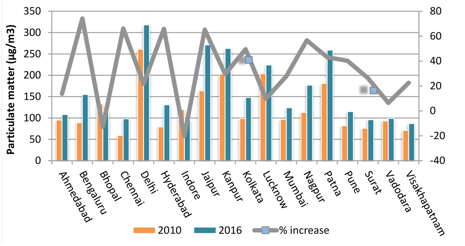 | Kolkata | 24-h mean concentration PM 10 = 97.00 |