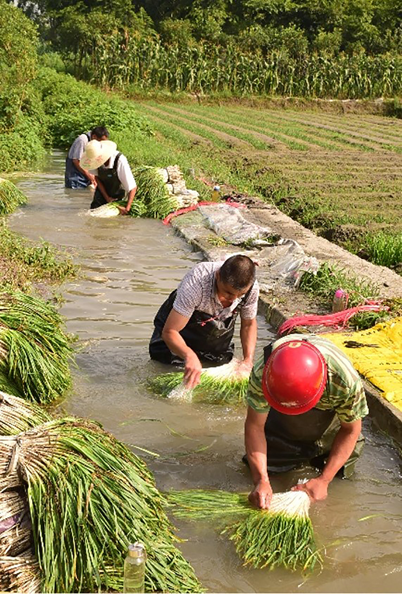 W Village has a landscape of rice paddies and other crop fields interspersed with many residential wooded lots (linpan) typical of the area historically irrigated by the Dujiangyan Irrigation System. Geospatial analysis using ArcGIS, Google Earth satellite imagery and field surveys carried out on the ground in summer 2017 revealed that farmland occupies 69% of the land; forests 14%; built lands, including human settlements and roads, 12%; and freshwater bodies 5%, including channels and ponds. Field research on W Village's GMS was carried out in between 2017 and 2021. The township (zhen) to which W Village belongs straddles one of the Dujiangyan system's arterial canals and provides a large share of Chengdu's urban drinking water. The township has thus become a special focus for the implementation of environmental protection policies, including proscribing all polluting industries, plans to relocate all residents from a 200 m (660 ft) wide buffer zone along the river banks, and restrictions on house construction within 500 m (1,650 ft) of the river bank (Wu and Abramson, 2019). Farmers were relocated to new housing outside of the environmental quality protection buffer zones along the river and highway. Although farmers no longer live in the buffer zones, they continue farming there, which involves polluting activities such as growing vegetables with chemical fertilizers, pesticides and herbicides, and washing dirt and chemicals off the vegetables into water channels (Figure 2). This will lead to two main problems: the livelihood of relocated farmers will be threatened since they are away from their farming fields, and the chemicals will still flow into the river that provides drinking water for the Chengdu metropolitan center. The situation reveals a mismatch between the scale of the source of the pollution—individual farmers' livelihood practices—and the scale of the governmental response, which follows national standards and is implemented by a large municipal region.