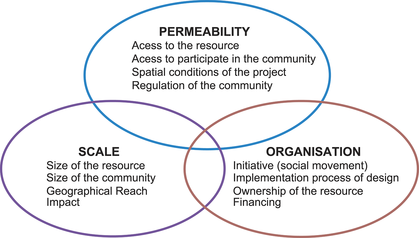 In our analysis, we name this quality the permeability of a commons. We argue that sustainably governed urban commons are easily accessible spaces with transparent decision-making that allows newcomers to participate and sustain the project. As this quality or condition includes several spatial and social parameters, we examine the following variables: the accessibility of the space and its spatial conditions, the openness of the community (i.e., whether newcomers are allowed to participate in the community), and the established community form that describes how the group is organized and how they make decisions.