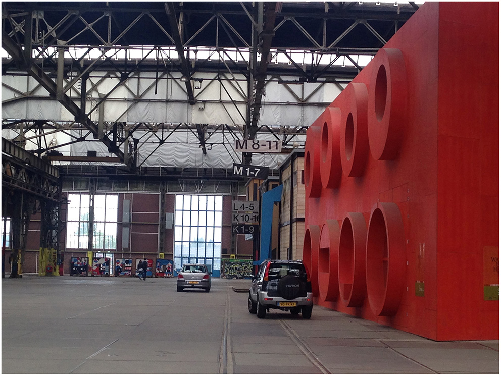 Kunststad4 (Art City) at NDSM Wharf in Amsterdam is a project in a former shipbuilding warehouse that was converted into a cultural space. This project was initiated in the late 90s by a group of skateboarders and theater makers who won a public tender for the temporary use of the East part of the wharf, which was advertised by Amsterdam's planning authorities. It is an example for a user-based design and activation of an abandoned building, developed over a long period of time. The character of the wharf and its surroundings has inspired many artists, cultural entrepreneurs and small scale companies and still invites appropriation today (Figure 4).