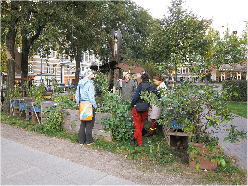 Consequently, the principle of commoning already incorporates ecological, economic, and social aspects of sustainable governance. The commons as self-managed spatial resources in collective ownership oppose the commodification (Harvey, 2013) of urban space as well as the privatization and unequal distribution of space. The socio-cultural aspect is inherent in the collective production of space, as is the careful use of resources as a principle of urban subsistence (Pelger, 2021).