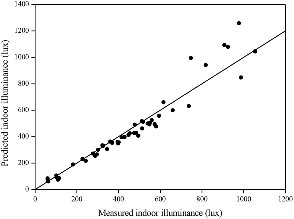 Daylighting has long been an essential architecture issue in visual comfort (Escuyer and Fontoynont, 2001) and passive energy-efficient building designs (Li and Lam, 2003; Lou et al., 2017). The determination of the interior daylight level is an important step in assessing daylighting schemes. Quite often, the usual approach for calculating the internal daylight from outdoor illuminance is expressed using daylight factor (DF), which is defined as the interior daylight divided by the corresponding horizontal sky illuminance available from an unobstructed International Commission on Illumination (CIE, 1994) overcast sky (i.e., no direct component). The approach is used in many European countries, especially in the UK where the approach and the related simple calculation tools have been established to predict DFs at different phases of the design procedures (British Standards Institution, 2019). In general, the method is simple to apply, but it is inflexible to simulate the kinetic situations in daylight illuminance since the solar location varies under partly cloudy and clear skies. For sites where partly cloudy or cloudless skies appear more often, the conventional DF method seems not suitable for determining internal daylight. Indoor daylight illuminances largely rely on the precise distribution of sky luminance at the same period. In 1983, the daylight coefficient (DC) theory, which considers the variations of sky luminance, was established (Tregenza and Waters, 1983). The CIE has employed a set of 15 sky standards including all possible range of skies in nature (CIE, 2003). As reported by many investigators, all the CIE sky standards give a fine total skeleton for denoting the real sky situations, and the prevailing climate for some places can be effectively identified by a subgroup of three to four CIE standard skies (Tregenza, 1999a; Li et al., 2003). Using the DC method for computing daylight illuminance can be quite complicated. In a previous study, we worked out simple steps to estimate the interior daylight illuminance based on the DC theory under the 15 CIE sky standards (Li and Cheung, 2006; Li et al., 2006c). The evaluation of the simple prediction method was conducted via a scale model (Li et al., 2006b) and full-scale (Li et al., 2006a) field measurements under real sky conditions. Results through daylighting simulation can give complement particulars for architects and building designers to evaluate design cases (Tsou et al., 2003). The lighting simulation programs available in the market are often quite complex and comprehensive to be adopted for the design of tall buildings containing many rooms. It can be cost demanding to have a full-scale computer simulation for building professionals in modeling the building geometry with long simulation times (Reinhart and Herkel, 2000). Architects and engineers would make simulations using sophisticated computer programs to get more accurate results only when the design proposals have been confirmed and ready for submission. A simple software tool would be useful for the non-lighting experts at the preliminary design phase when different design schemes and ideas are being compared and assessed (Moeck and Selkowitz, 1996).