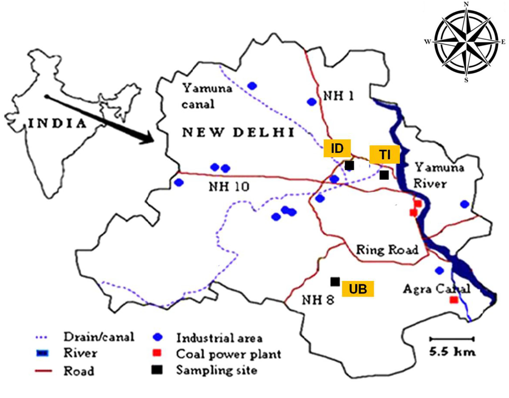 Map showing study sites in Delhi.
