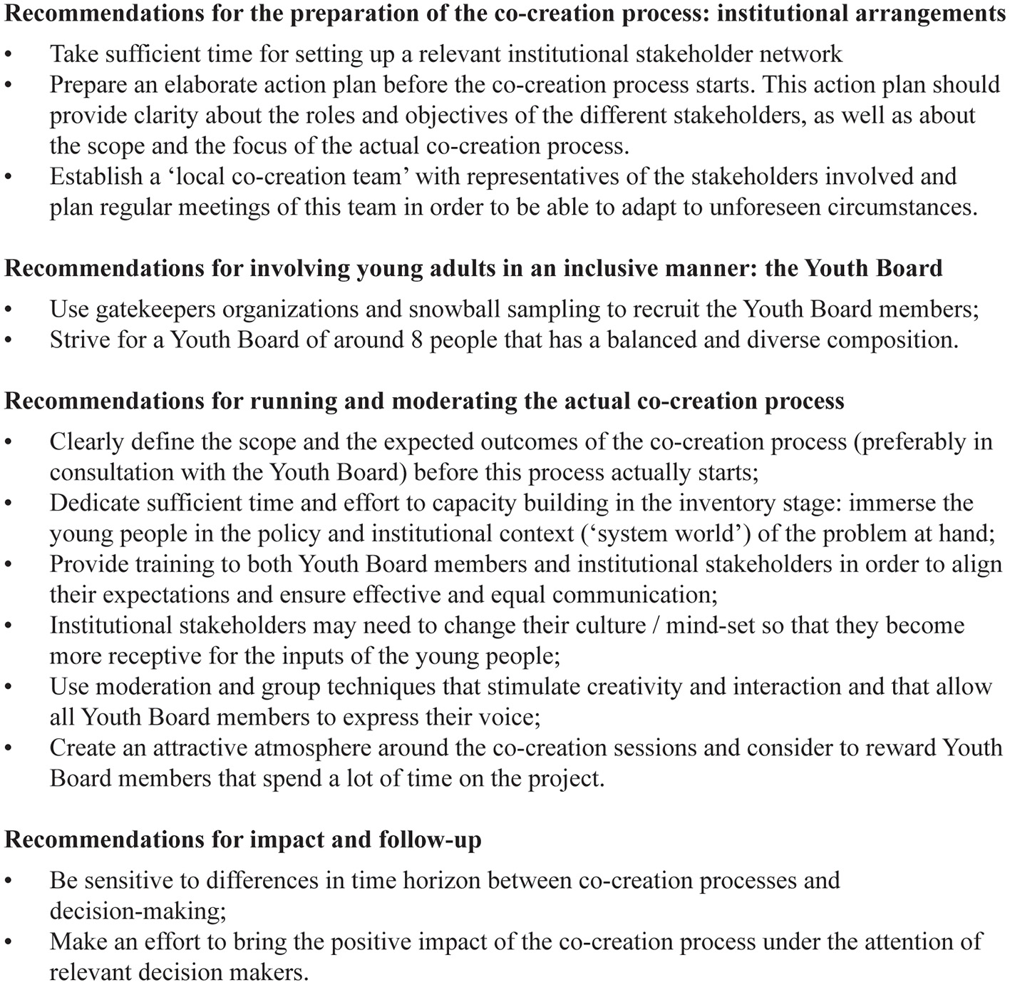 Recommendations for a successful co-creation project with young people.