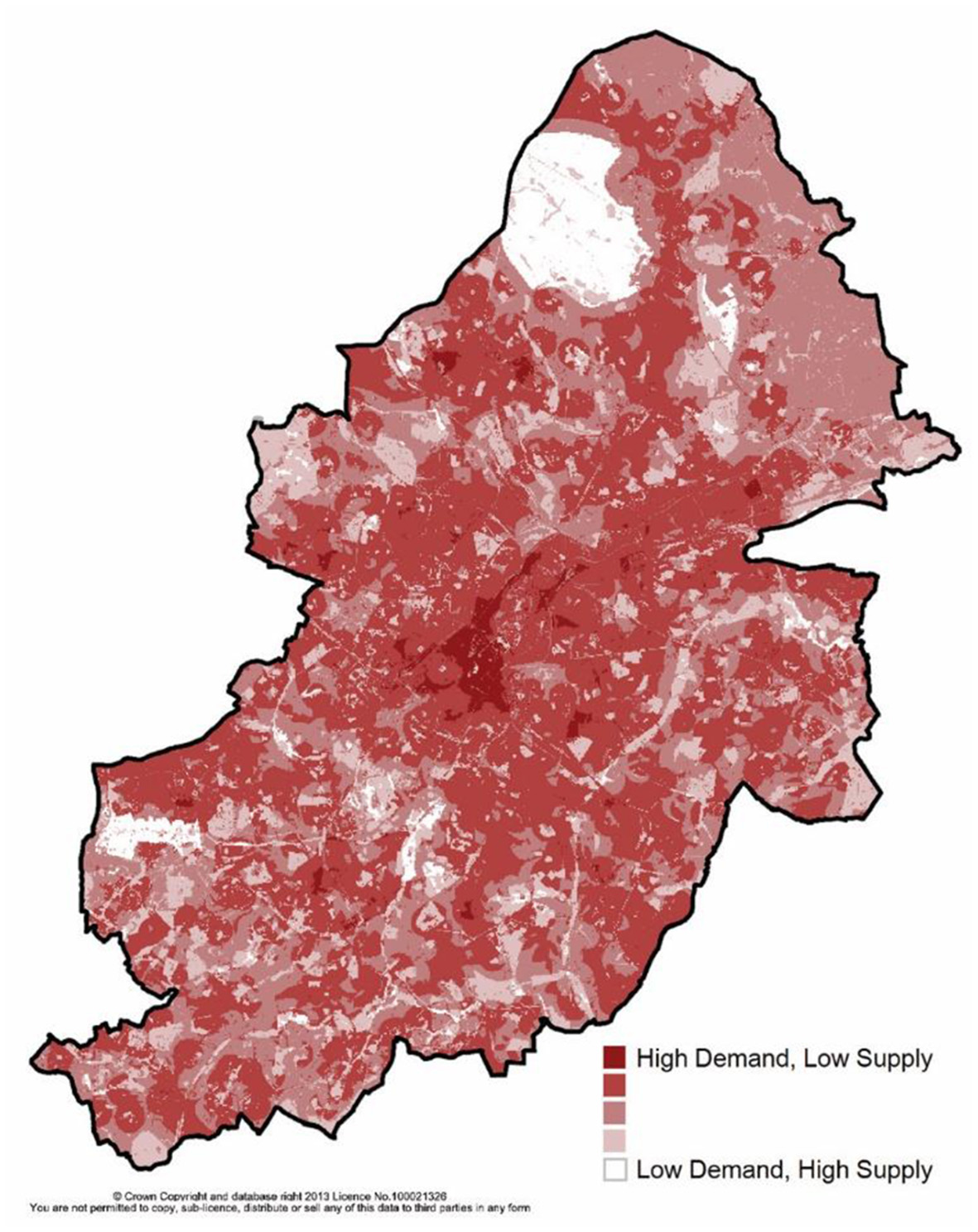 A greenspace challenge map for Birmingham (Hölzinger et al., 2013).