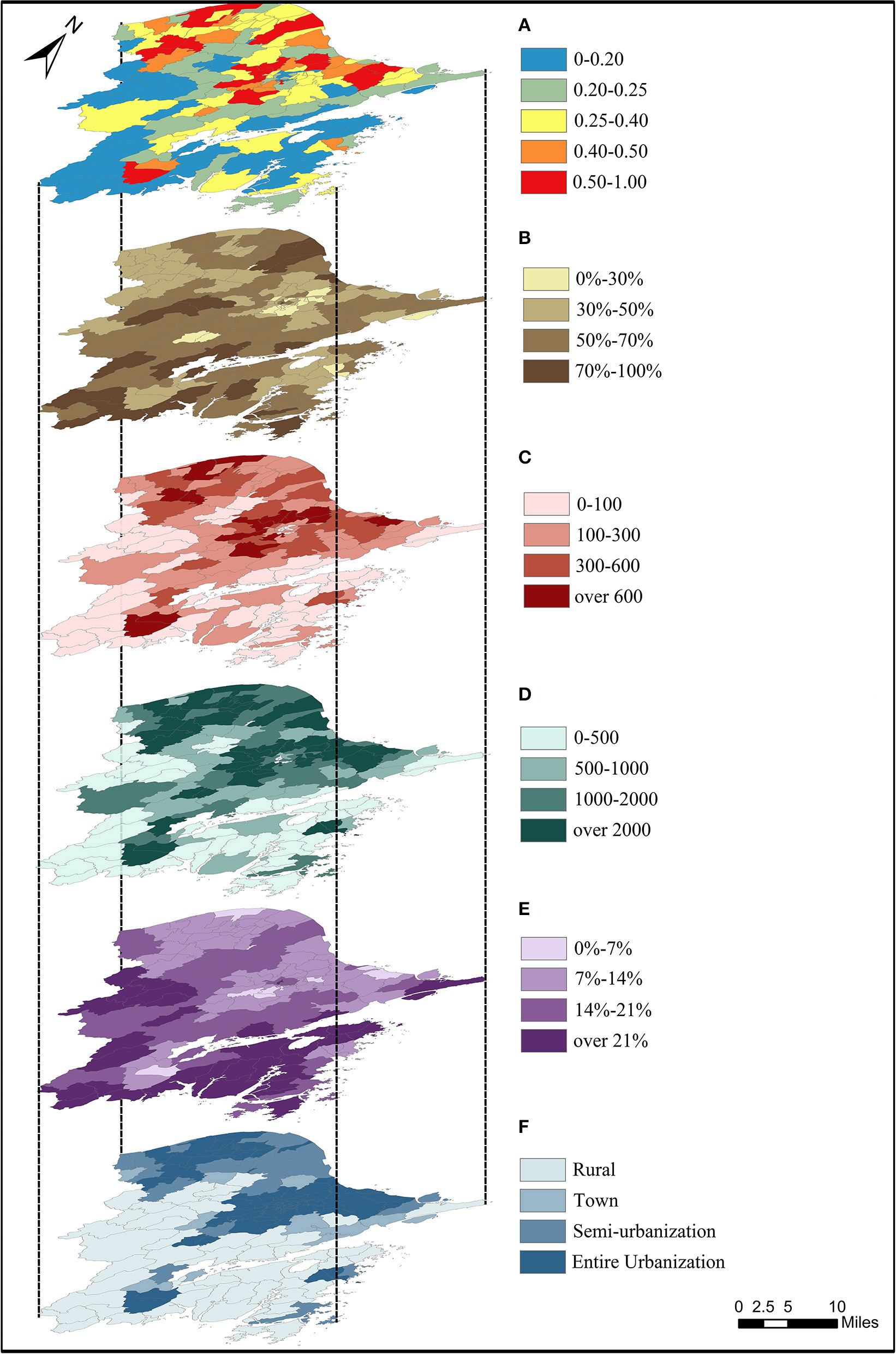 Therefore, we combine supply, demand, accessibility, and healthcare quality evaluation systems into the study of healthcare spatial deprivation, aiming to reveal more comprehensively the trade-off considerations of equity and efficiency behind the healthcare spatial pattern. The IHRSD is used to reveal the spatial deprivation pattern of healthcare resources and service capacity under rapid urbanization and to provide insights for the construction of public service equalization in new urbanization. We establish the following hypotheses: (1) There is high HSD in the downtown because of population clustering, and in the rural area because of the less developed and poverty; (2) Young childhood, fertile women, and the elderly, as the vulnerable groups, are more vulnerable to HSD; and (3) There are regional differences in HSD, mainly due to factors such as socio-demographic, urban development, and nature.