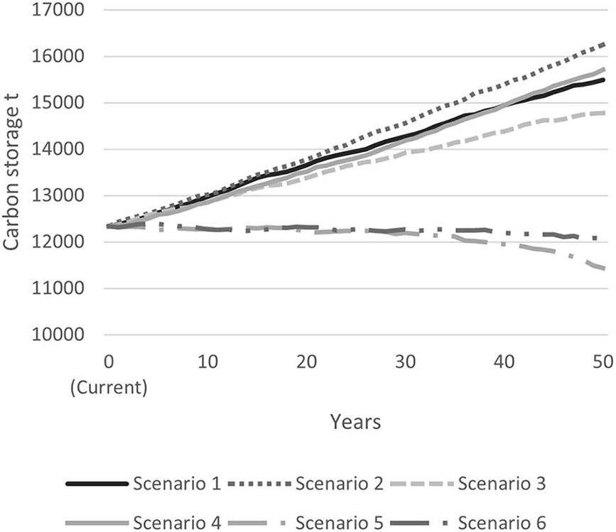 | Scenario 2 | 1,000 trees to be planted annually, i.e., double the current tree planting rate. No pest outbreaks. |