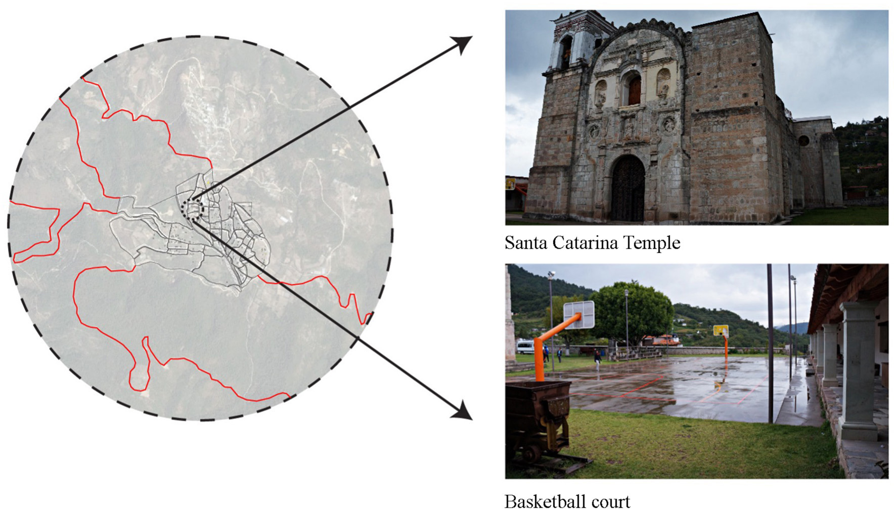In Santa Catarina Lachatao, the municipal seat stands out, both because of its location at the center of the community (Figure 2) and also due to being the site of the municipal city hall of the community and other neighboring communities. Other important sites are the Catholic Santa Catarina Temple of Spanish origin, the Communitarian Museum, a restaurant, and a sports field (Figure 3). The communitarian character of public space profoundly impacts and anchors social space.