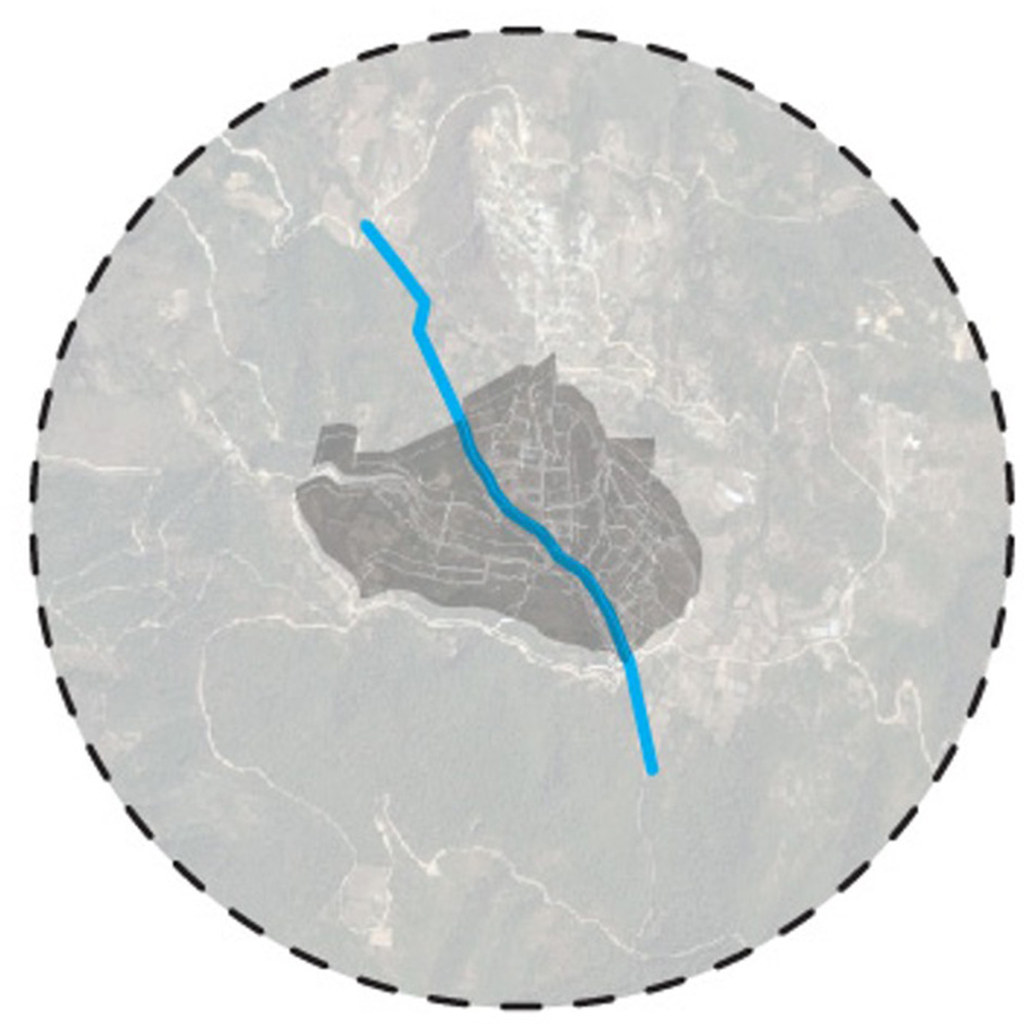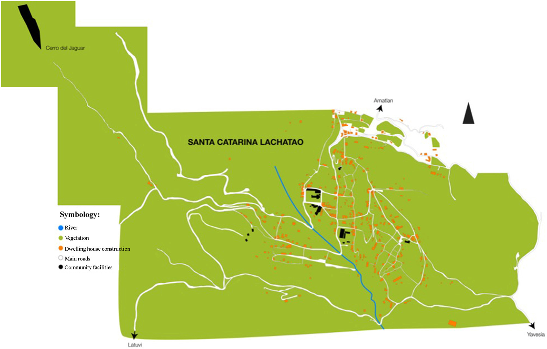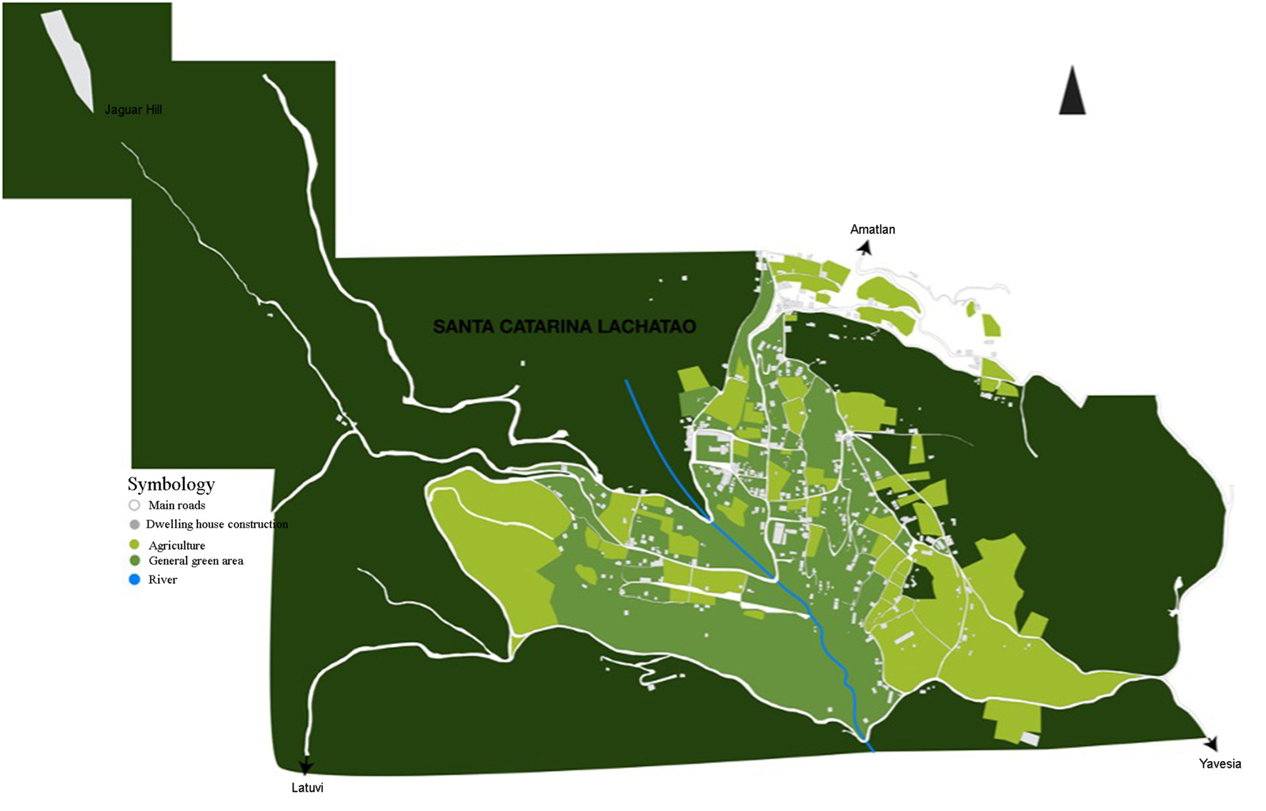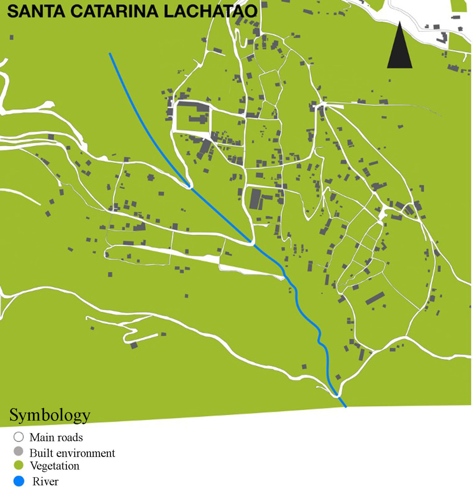 Considering the natural resources and elements informing Santa Catarina Lachatao life, agricultural practices are the most important economic activities whose yields provide sustenance for the citizenry as well as sustaining herds and flocks of domestic animals. Figure 9 shows the distribution of flora in balance with the spatial distribution of natural resources; the waterway traces a north–south guiding axis. The residential zone is in the east to make the most of the rising sun, taking advantage of the early hours of sunlight and the territorial topography for the most beautiful, panoramic vistas of the community and peripheral forests. The community grows to the west, visibly divided by the waterway. Considering this geography, with municipal aid and the custom of tequio, the populace raises the infrastructure and features of a downtown, available to all indigenous citizens and any visitors or tourists who so wish to know the community (Rojas-Serrano and Martínez-Corona, 2017). Seasonal tourism and visits through the city space are geographically controlled.