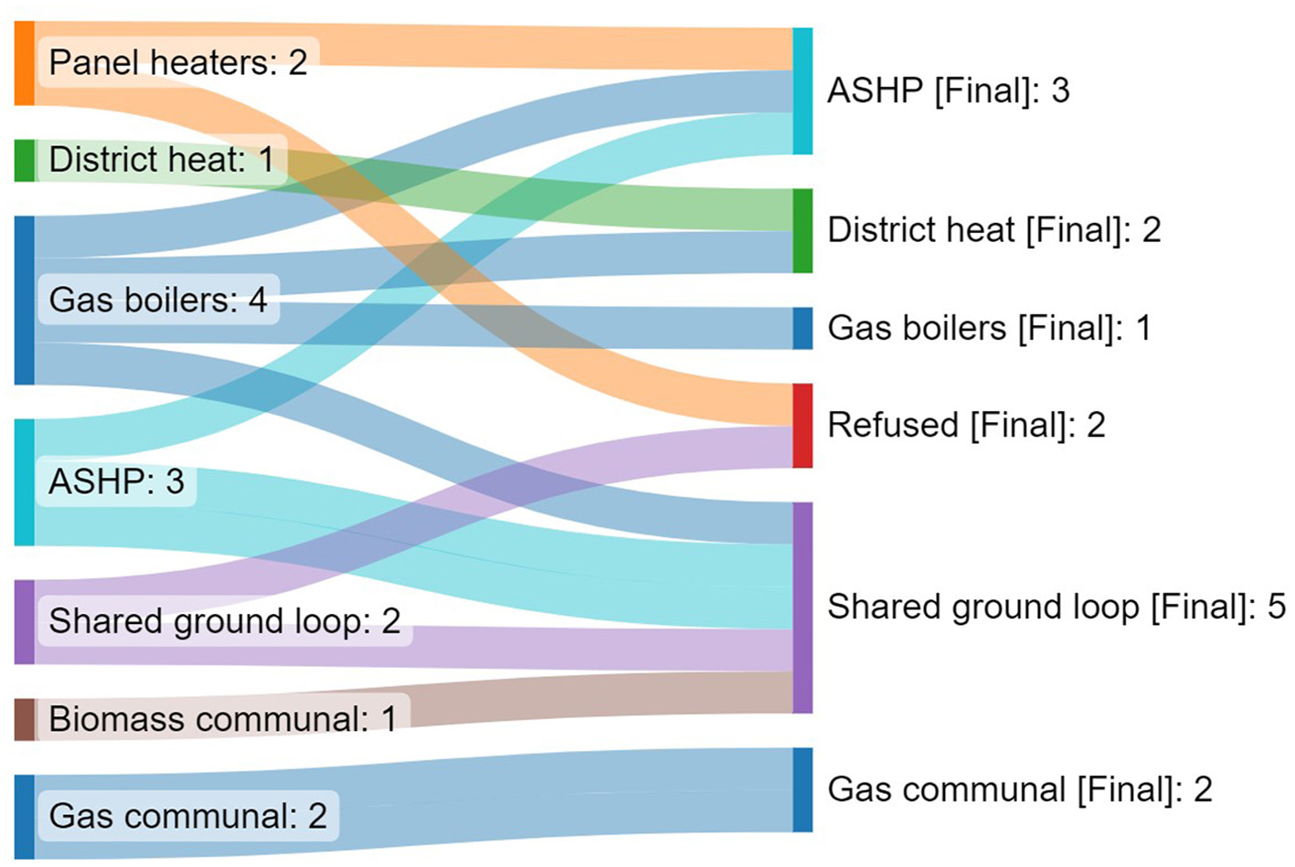 The shift to LZC heating technologies in urban settings takes place within a broader socio-political regime (Webb et al., 2016, 2017; Tingey and Webb, 2020). This can impact decisions by those seeking to support or challenge the transition. The regime for residential heating in the UK features lock-in characteristics such as a well-established natural-gas grid serving most UK homes (Dodds and McDowall, 2013; Gross and Hanna, 2019); uncertainty around a shift to electrification vs. a repurposed gas grid to carry hydrogen for residential heating (Lowes et al., 2020b); a large gap between electricity and gas price that makes electrified options less favourable in operating costs (Barnes and Bhagavathy, 2020); a national building regulations policy which has not recognised the decarbonising of electricity grids in prescribed carbon factors (Rees, 2019); and a generally poor housing stock which aligns well with the instant heat and high temperatures of fossil heating, but is very inefficient (Chaudry et al., 2015; Guertler et al., 2015).