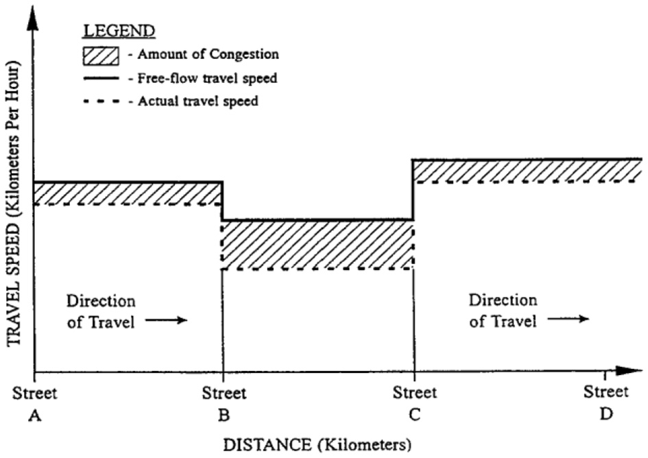 | Total segment delay | = [Actual Travel Time (min) - Acceptable Travel Time (min)] *Vehicle volume (vehicles) |