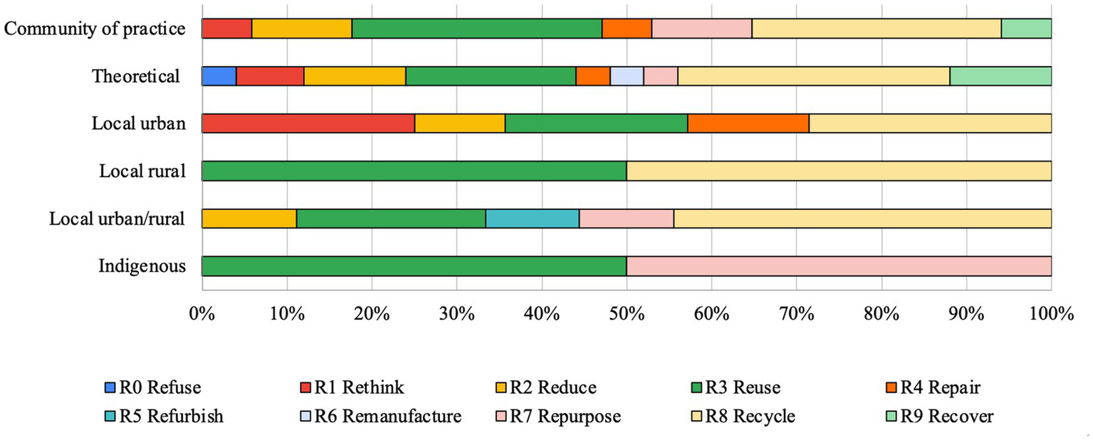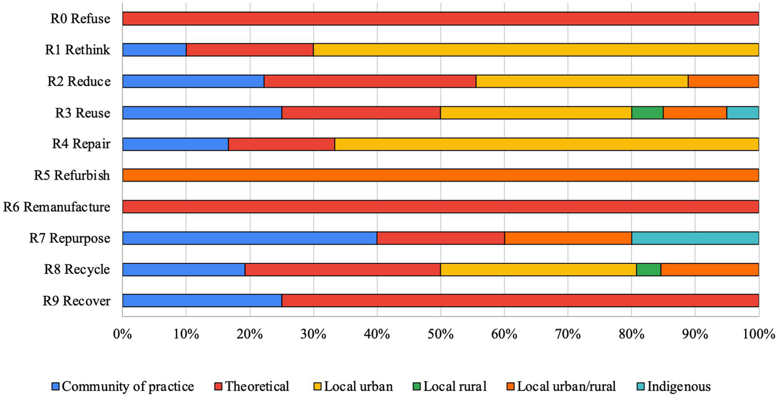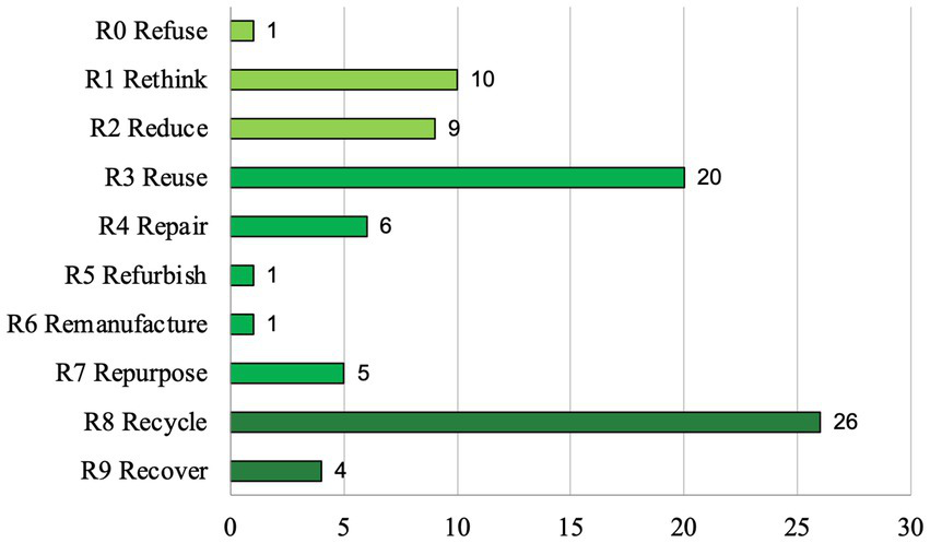 ○ 10Rs framework (Kirchherr et al., 2017). This framework allows to classify circular experiences consistently and uniformly. The ten actions of the R framework cover a wide range of circular strategies, allowing for the capture of a broad spectrum of circular experiences present in the literature. The authors included in the query code all the Rs, except for “refuse,” namely: