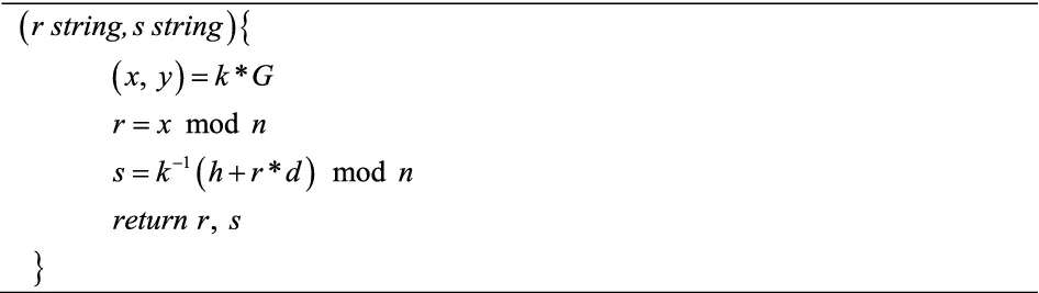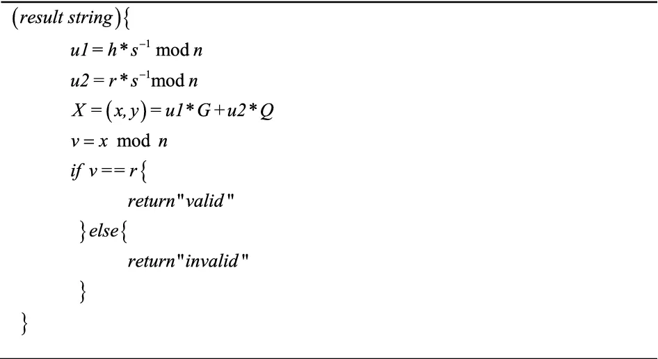 Elliptic Curve Digital Signature Algorithm (ECDSA) combines Elliptic Curve Cryptography (ECC) and Digital Signature Algorithm (DSA) (Johnson et al., 2001). With the same level of security as Rivest-Shamir-Adleman (RSA), ECDSA can provide smaller keys and relatively faster computation speed.