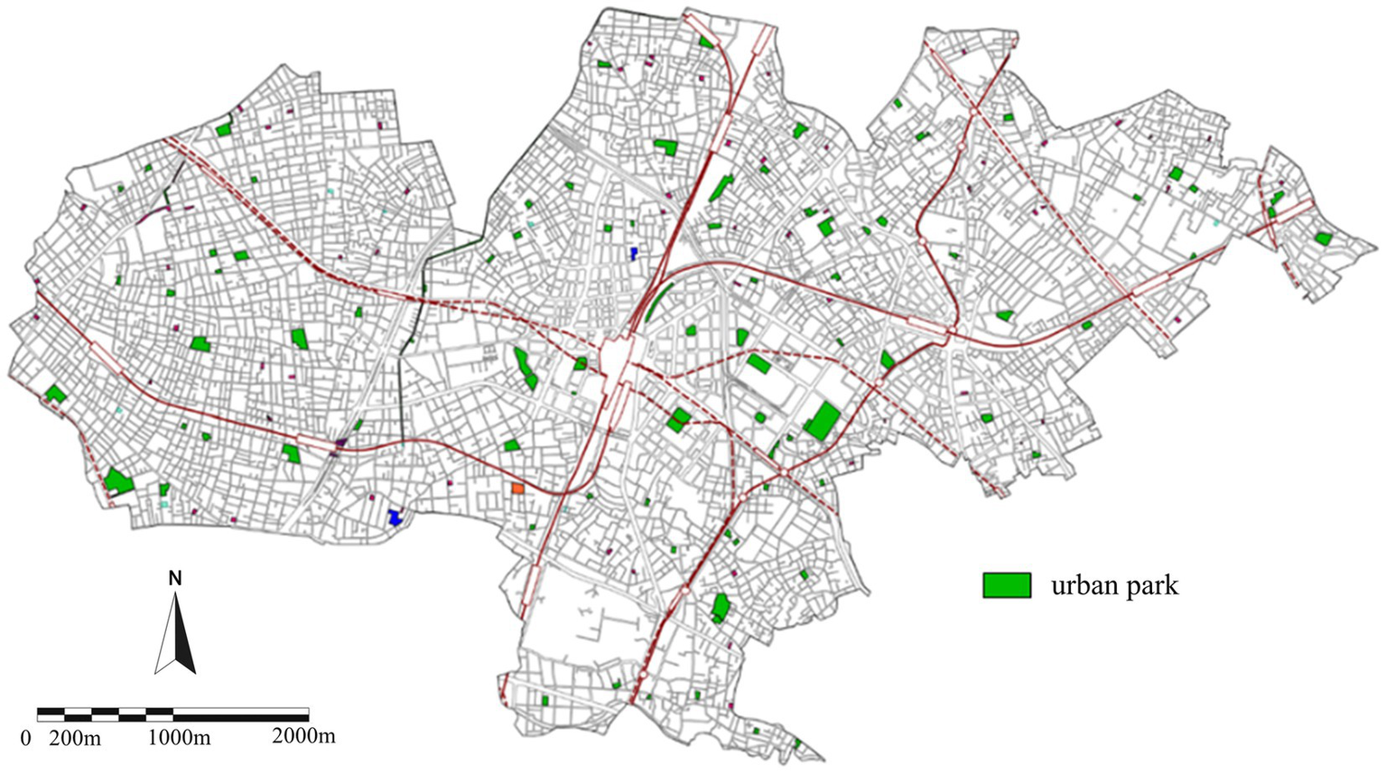 Distribution of urban parks in Toshima Ward, Tokyo.