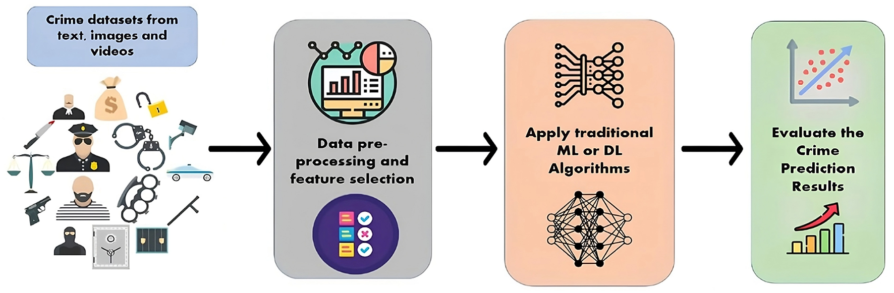 Mandalapu V. Elluri L. Vyas P. Roy N. (2023). Crime prediction using machine learning and deep learning: a systematic review and future directions. IEEE Access11, 60153–60170. 10.1109/ACCESS.2023.3286344