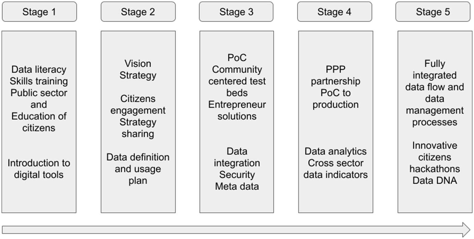A key principle of City 5.0 is identifying and addressing restrictions citizens face in accessing public goods and services before implementing technology-enabled city solutions (Becker et al., 2023). This aligns the efforts of public administrations, private organisations, and researchers around eliminating such barriers to improve citizens’ quality of life and enable their active participation in shaping future cities (Becker et al., 2023). City 5.0 misses elements related to citizen-generated data in shaping city policies or services. Leveraging citizen-generated data can provide insights into behavior patterns, preferences, and specific community needs, which is essential for effectively tailoring services. With IoT data (Becker et al., 2023), mention technological solutions like chatbots and telemedical services but no concrete discussion of how big data and IoT devices are integrated to provide comprehensive city services.