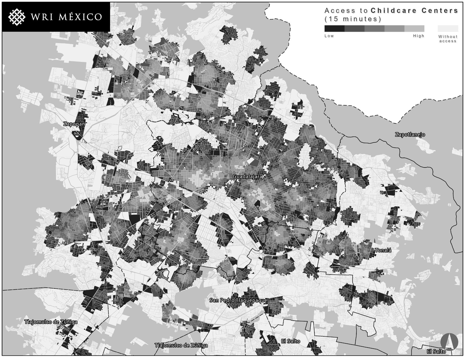Access to childcare centers in Guadalajara metropolitan area, Mexico. Source: World Resources Institute Mexico (2021).