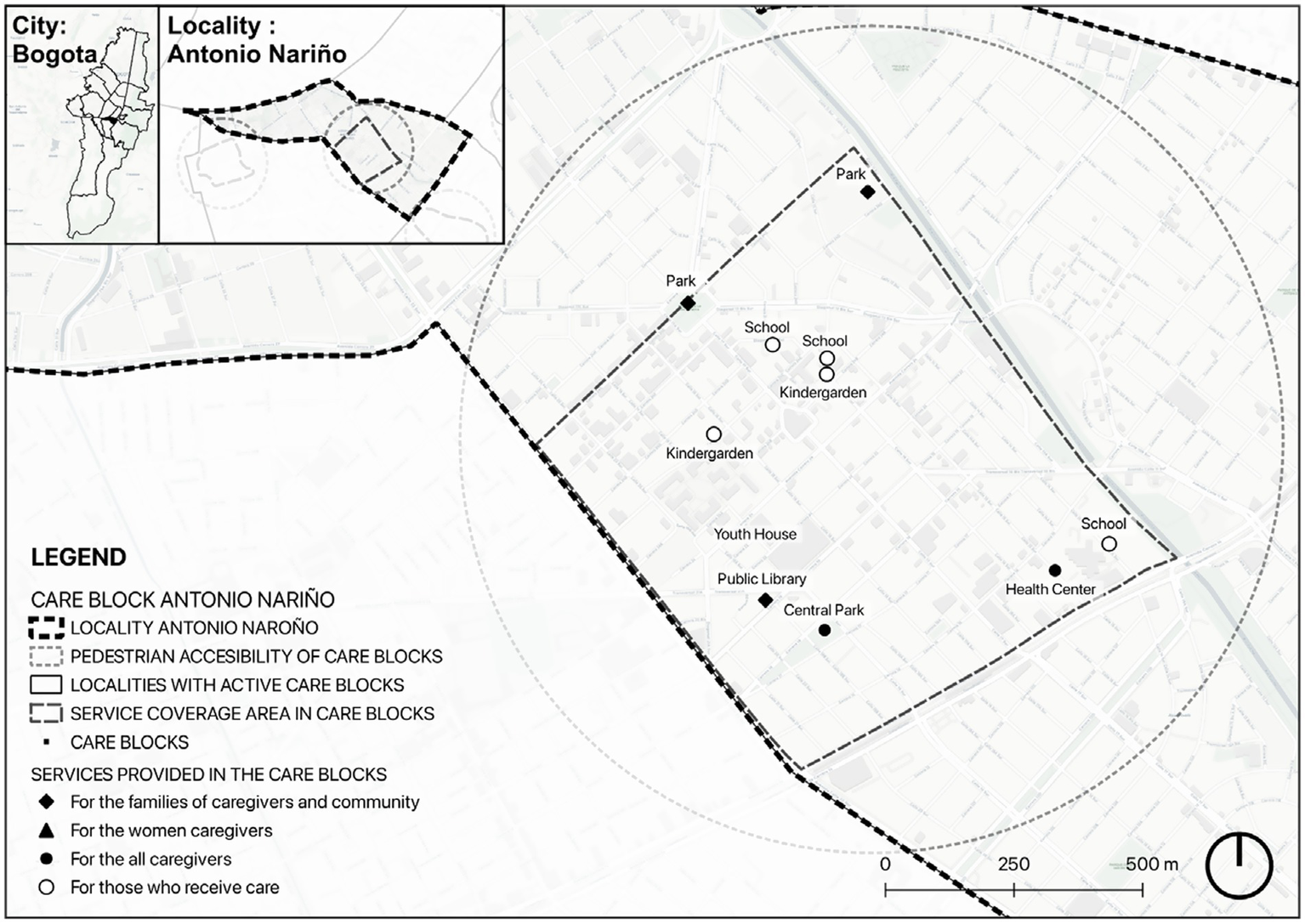 Rodríguez D. (coord.) (2024) Manzanas del Cuidado: Una ciudad para las mujeres. Bogotá: Alcaldía Mayor de Bogotá. Available online at: https://manzanasdelcuidado.gov.co/wp-content/uploads/2024/01/libro-manzanas-del-cuidado-una-ciudad-para-las-mujeres.pdf.
