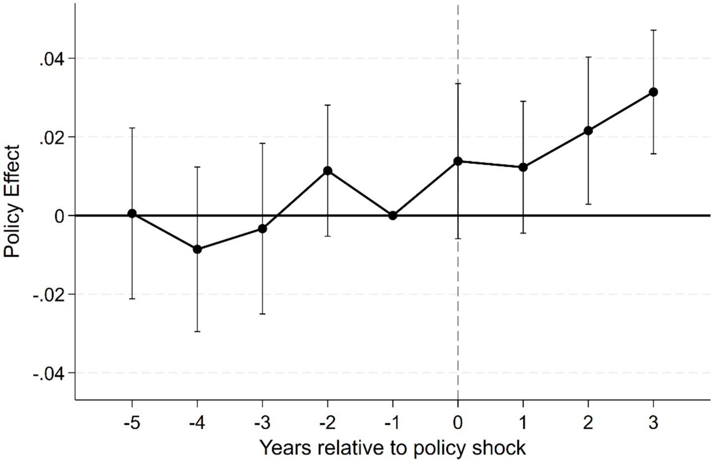 Second, one concern regarding the main findings is the potential bias that may arise from other confounding factors or trends inherent in the data. Therefore, following Lu and Yu (2015), this paper alters the time window by moving the approval year of UADPPs forward by 4 years and conducts a placebo test. The results of the placebo test reported in Column (2) of Table 4 show that the regression coefficient of DID4 is insignificant, which validates the robustness of the baseline regression results in this paper.