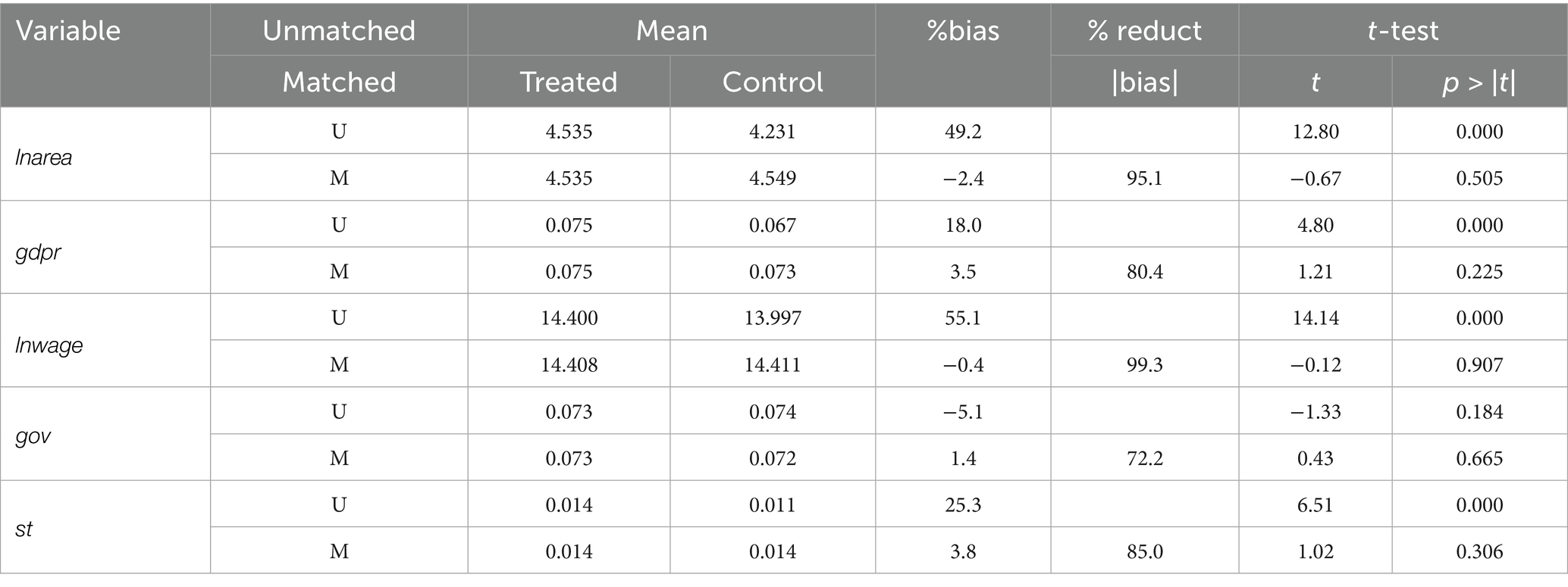 To further validate the reliability of the main findings from the baseline regressions, this section conducts additional robustness checks. First, since the approval policy for UADPPs is not a natural experiment in the strict sense, a selection bias may persist in the analysis of research data. To mitigate this effect, this paper employs propensity score matching (PSM) to match suitable control groups for the treatment group, followed by difference-in-differences (DID) estimation.