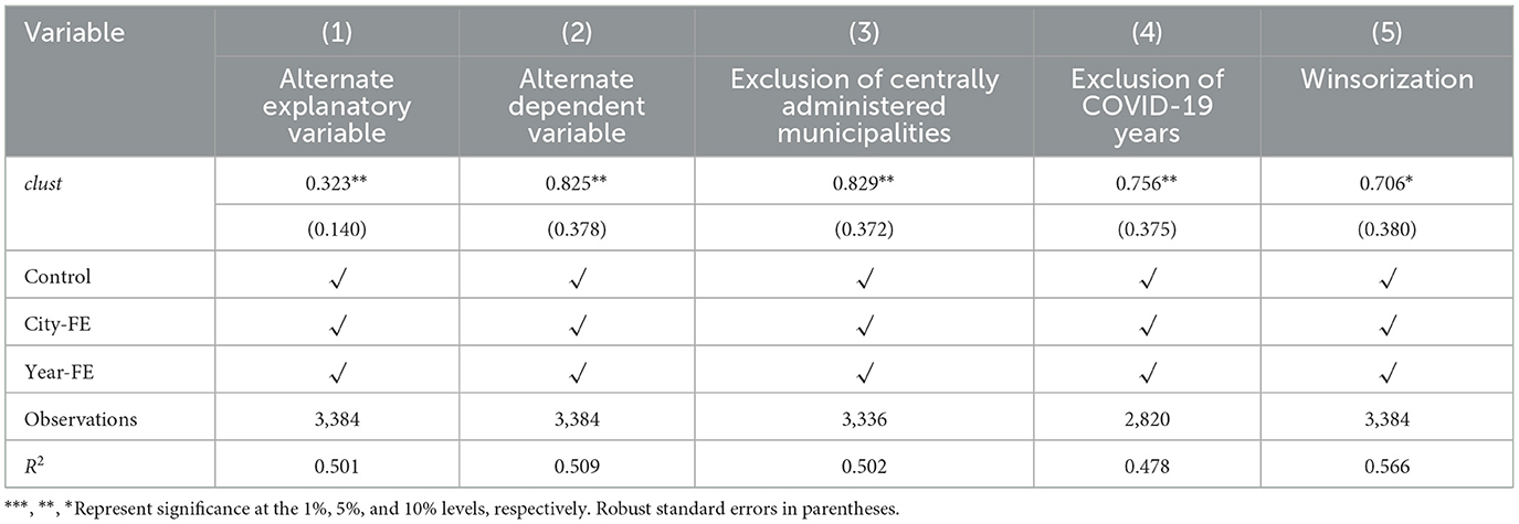 To further ensure the reliability of the baseline regression, this study conducts robustness tests by employing alternative indicators, adjusting the sample scope, and applying the winsorization technique. These tests verify the robustness of the baseline results.