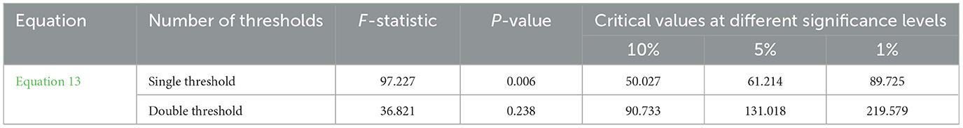 Due to the non-standard distribution of test statistics arising from the presence of unknown parameters, a bootstrap method with 500 replications is employed to approximate the asymptotic distribution of the test statistics, thereby rigorously evaluating the statistical significance of the threshold effects.