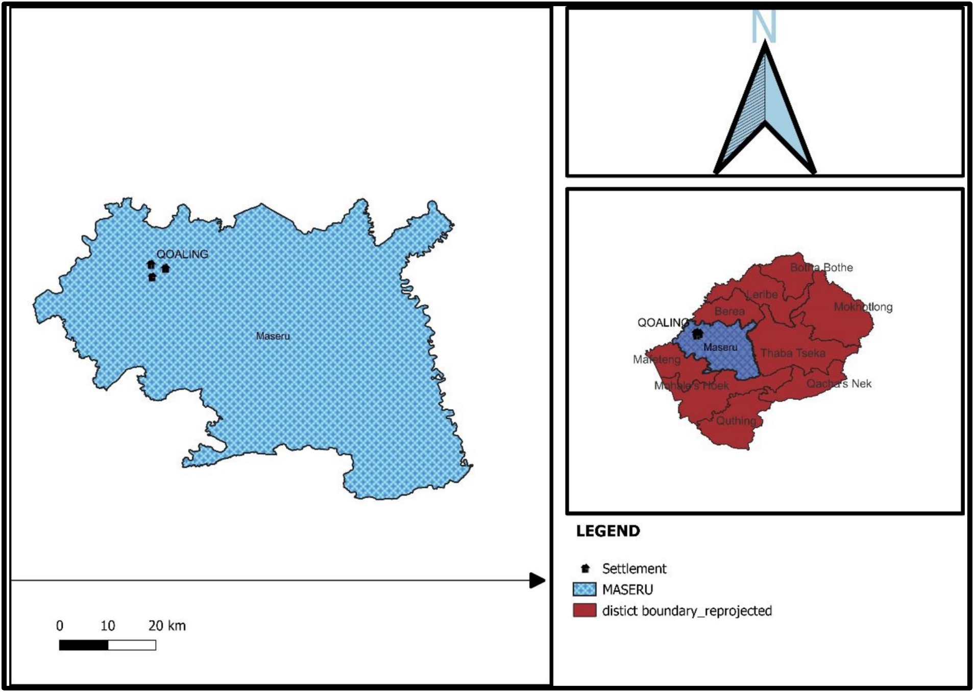 Maseru serves as the capital of Lesotho and also the capital of the Maseru district, situated along the border with South Africa, marked by the Caledon River. It is the most populous city in Lesotho, with a reported population of 330,760 according to the Bureau of Statistics in 2016. Additionally, Maseru acts as the primary economic centre of Lesotho, housing the government offices and administrative functions. It’s important to highlight that the city’s rapid growth has created a significant demand for housing. If the authorities fail to address housing needs, residents may turn to informal housing solutions, which often lack quality. Consequently, this research focuses on the impact of planning on adequate housing development, specifically examining Maseru and Johannesburg due to their comparable patterns of population growth and their roles as economic centres. Within Maseru, the area of focus was in Qoaling which is one of the most densely populated neighbourhoods in Maseru, with numerous residents living in substandard housing. This community is situated approximately 10 km from the central business district of Maseru. Its proximity to garment factories results in a significant demand for housing in this area, highlighting the necessity for authorities to address this issue (Figure 3).