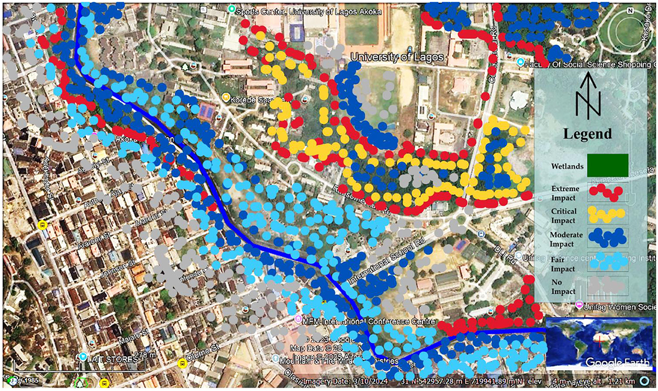 Creating mitigation, restoration, and enhancement plans to restore the quantity and integrity of groundwater, and conducting physicochemical investigations for topographic waters through watershed modeling (Zhen et al., 2022; Zehang et al., 2024). This study, however, presents a valuable and well-grounded approach to assessing urban water systems in Lagos, combining ecohydrological tools, spatial analysis using Geographical Information System (GIS), and field observations. The inclusion of indices such as the Flood Risk Index (FRI) and the Urban River Restoration Index (URRIx) offers practical insights and potential for empirical contributions to ecological restoration, sustainable urban planning/design, and environmental management.