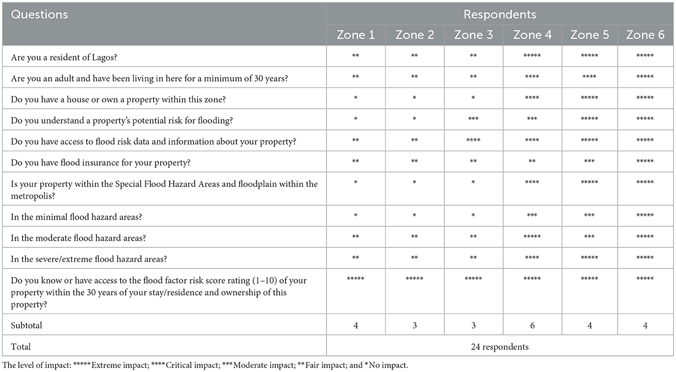 Table 1. Respondent's flood risk factor mean scores in the selected zones.