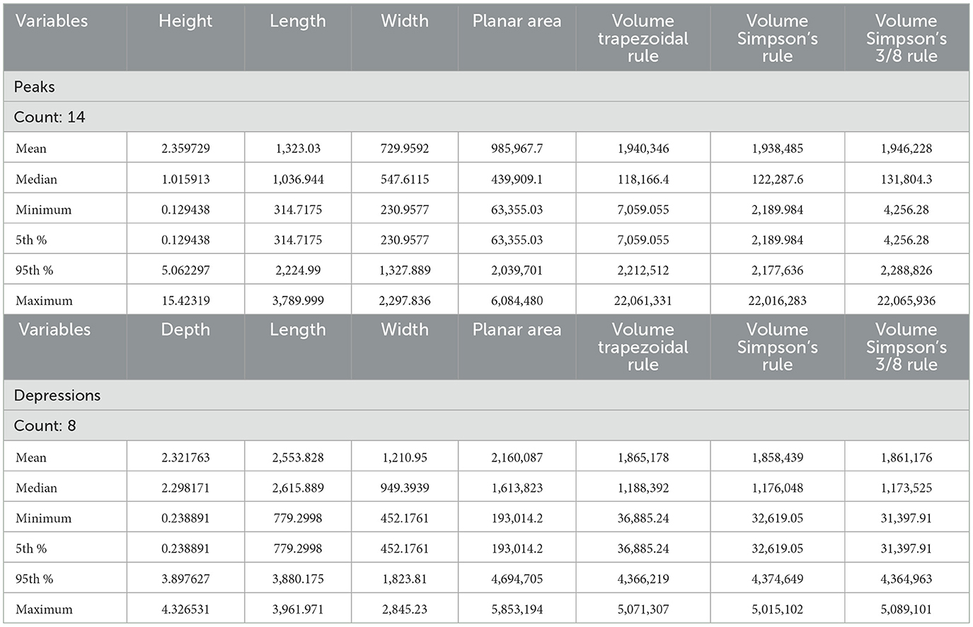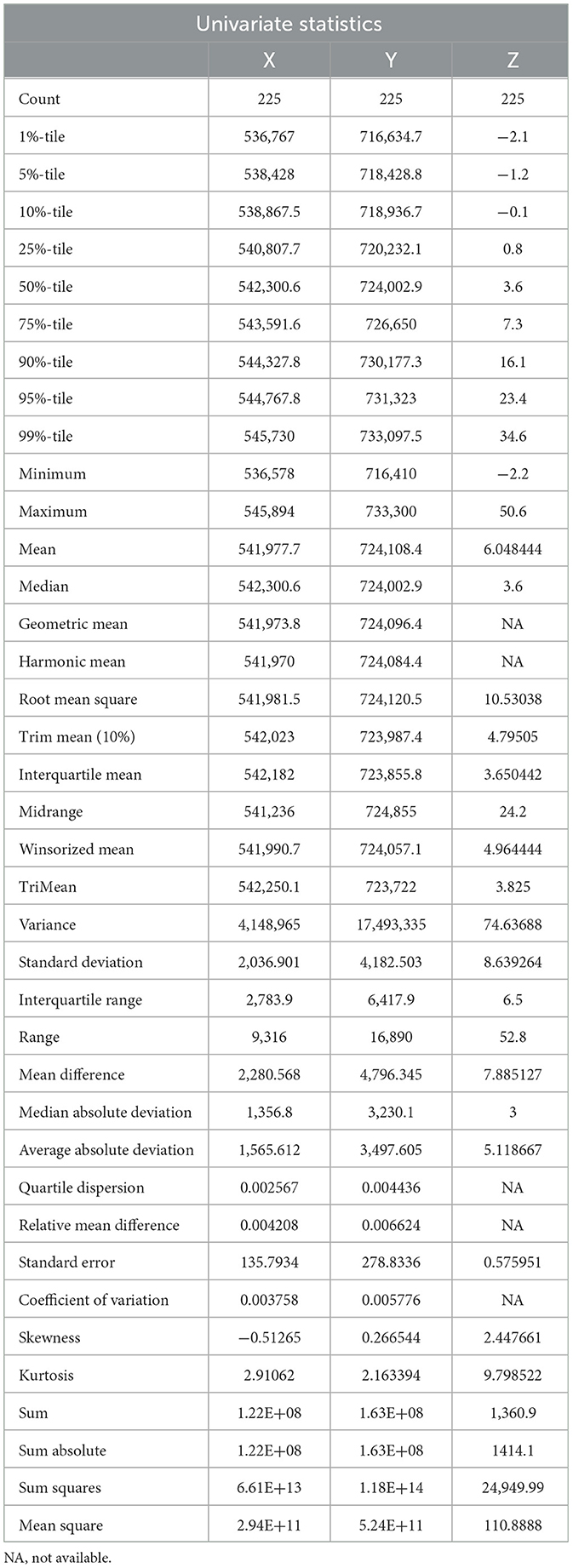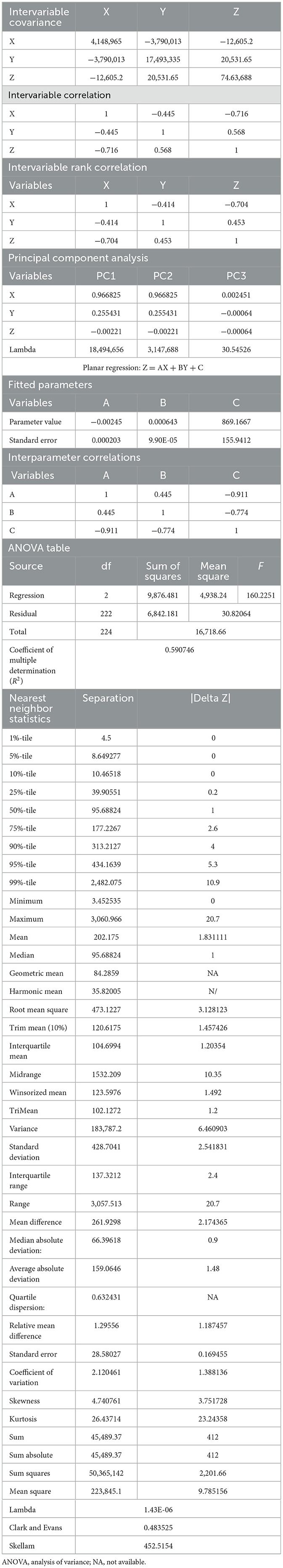 Table 3. Topographical data report.