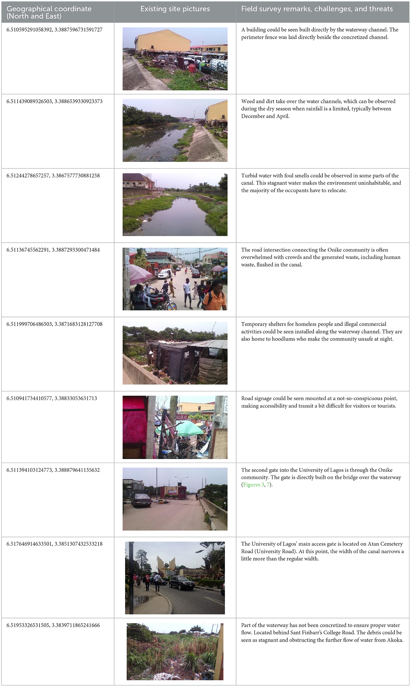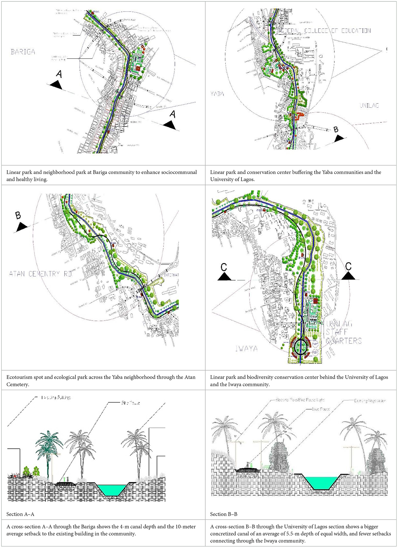 The vast network of navigable inland waterways has faced numerous challenges, stemming from ineffective urban management, regulatory deficiencies, and outdated drainage infrastructure within the metropolis. The maritime sector in developing countries in sub-Saharan Africa, particularly from the Lagos Lagoon, has faced numerous flood risk hazards, hence the need for an increase in the sizes of the water channels and urban regeneration of the green corridor along both the concretized and vegetated canals. All the bodies of water, including rivers, wetlands, streams, canals, and estuaries, have watersheds. The land area that releases water into a designated receiving basin, like a lake or river, is known as the drainage area (Yessoufou et al., 2024; Zhang et al., 2024; Chen S. et al., 2024; Aliyu et al., 2021).