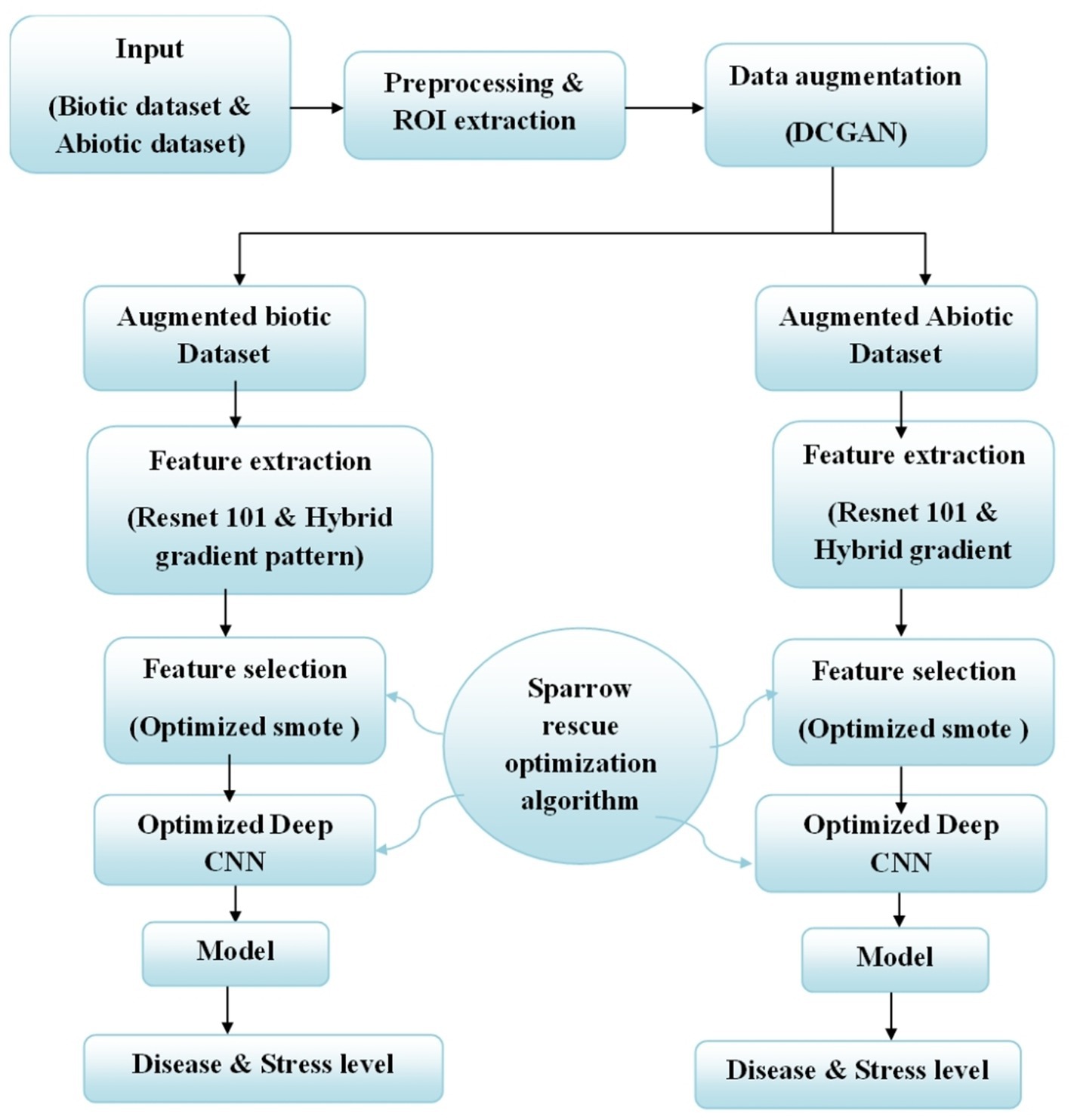 In the first section, the research problem and motivation are identified. The linked research in section 2 highlights the state-of-the-art approaches, their issues with the different stressors associated with the gaps and difficulties in the availability of the relevant datasets and precise diagnostic models. The details of the suggested methodology are also included in section 3, which is the article’s major body. This guarantees that the entire algorithm, including the dataset description, data argumentation, DCNN, and optimised process, is all included. Section 4 presents the findings, discussion, and conclusion pertaining to the proposed UrbanAgri.