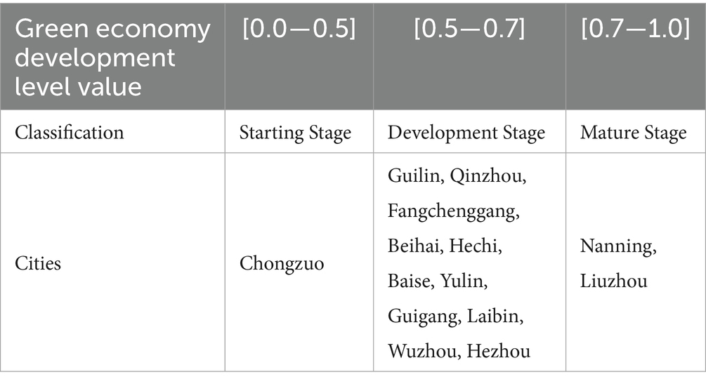 Citation: Yin H, Zhu Z, Pan L, Zhu F and Zhu L (2025) City-level assessment of green economy development and its driving factors: empirical evidence from 14 prefecture-level cities in Guangxi, China based on DPSR-GTWR integrated model. Front. Sustain. Cities. 7:1622975. doi: 10.3389/frsc.2025.1622975