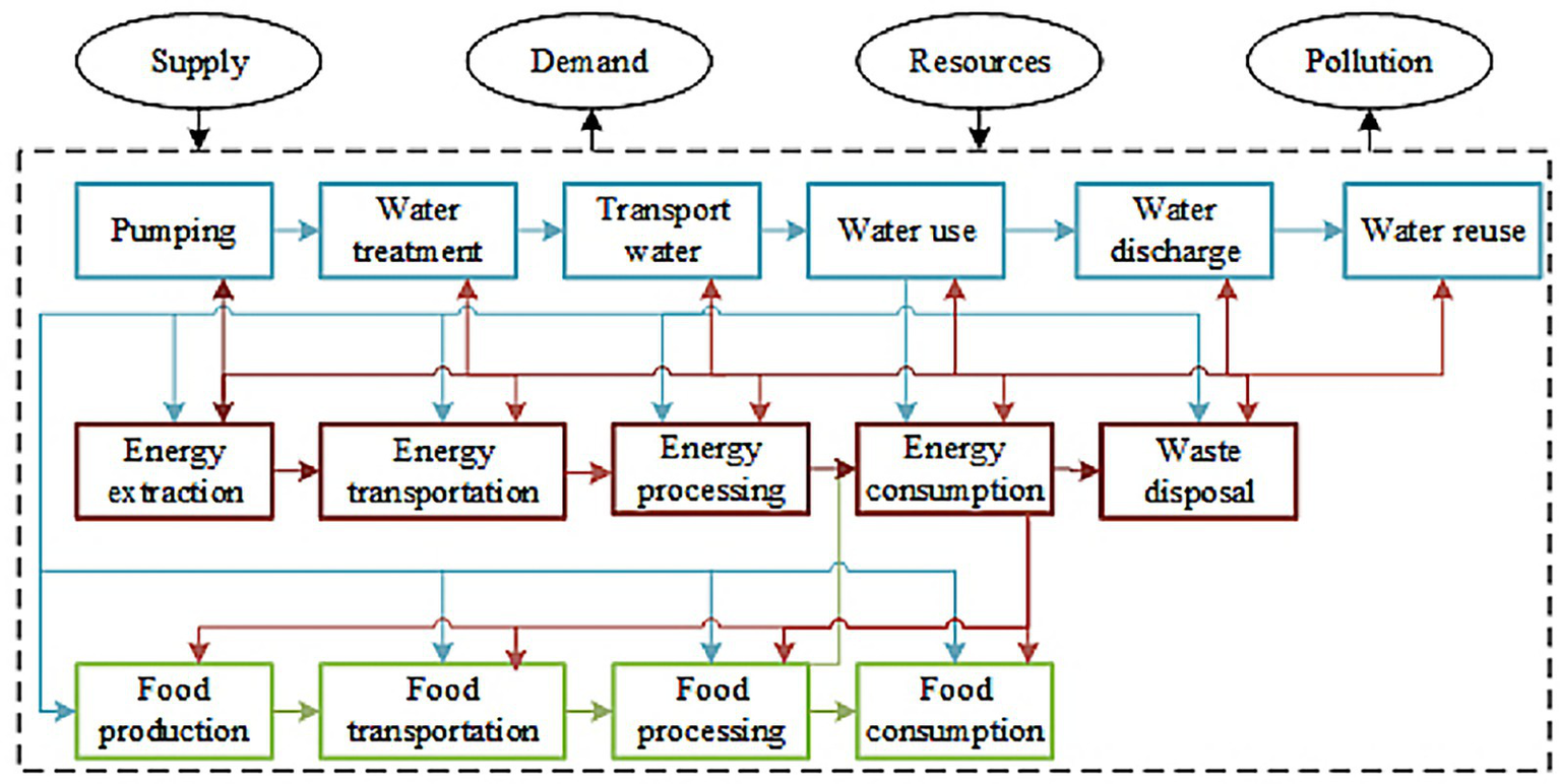 Relation among water, energy, and food (adapted from Li et al., 2021).