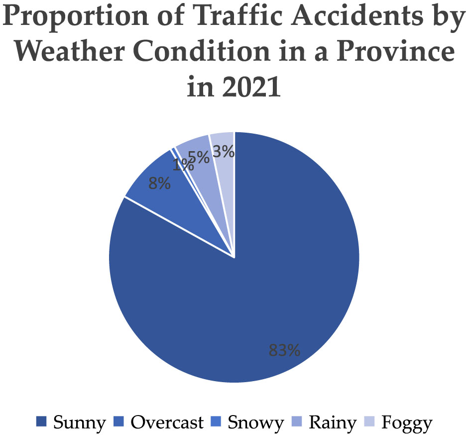 The distribution of traffic accidents under different weather conditions in a province in 2021.